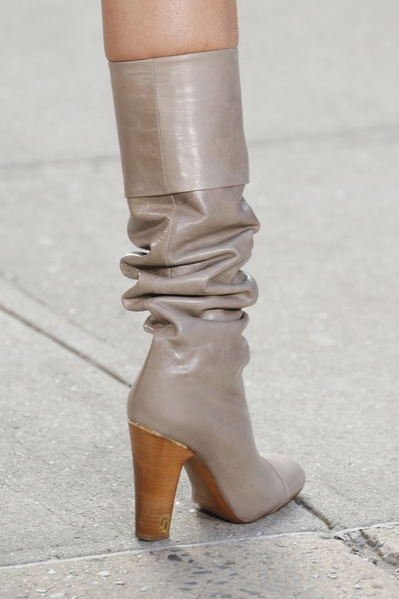 Pendant plusieurs saisons consécutives, les bottes à large sommet ne sont pas démodées. En raison d'un tel détail, ils ont l'air très inhabituel. Néanmoins, ils vont bien avec les robes et les pantalons skinny. Par conséquent, expérimentez hardiment en créant des images élégantes.