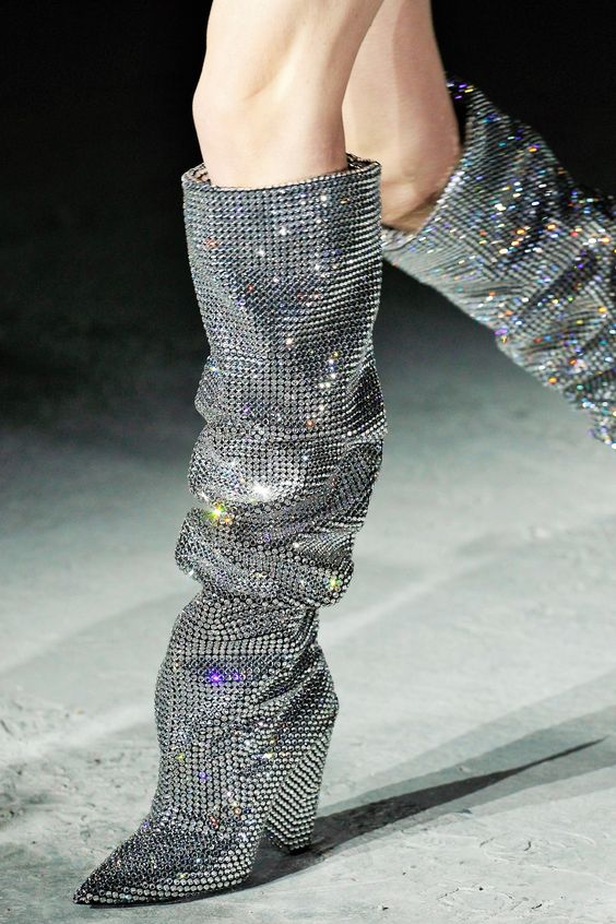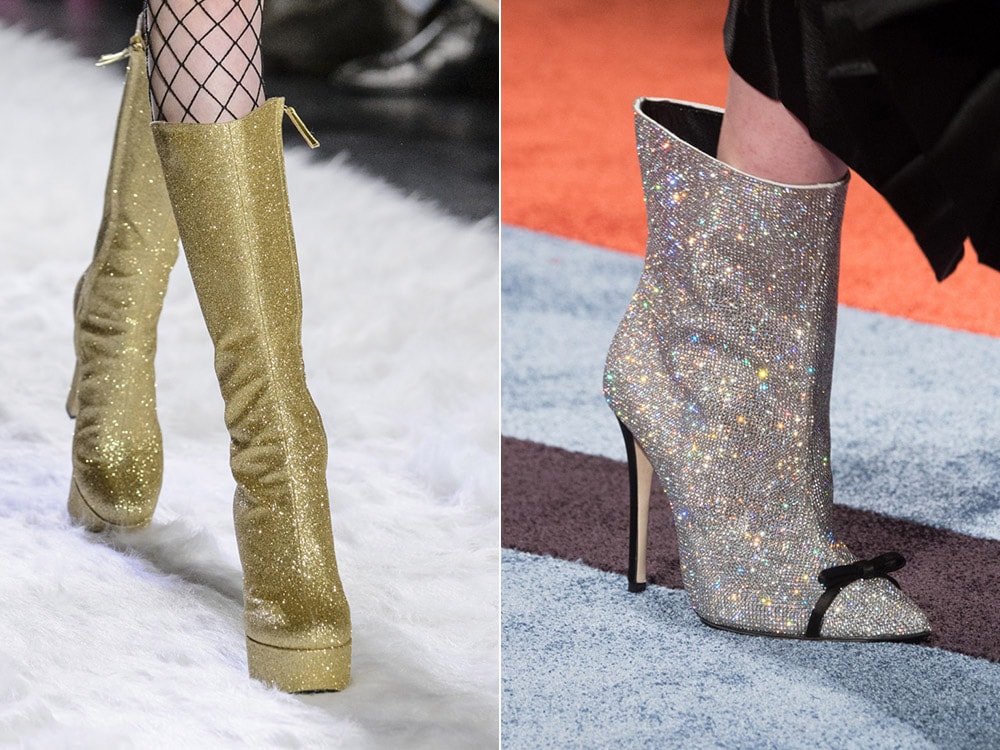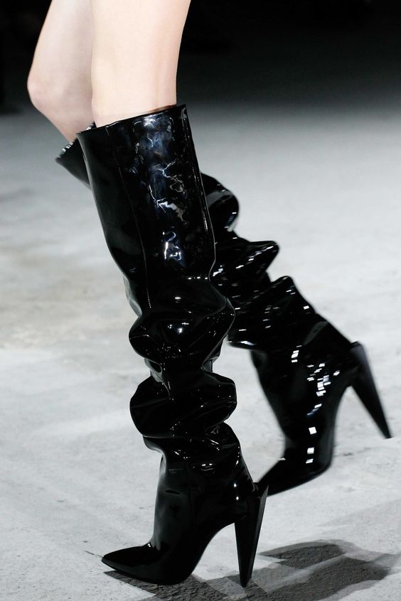 Pour ceux qui aiment diverses expériences dans les combinaisons de couleurs, nous recommandons de faire attention aux bottes avec un éclat métallique. De plus, il peut être à la fois lumineux et plus étouffé. Choisissez l'option qui vous convient le mieux.