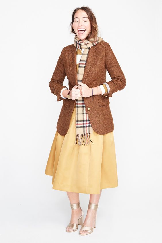 Un tel produit semble plutôt inhabituel, de sorte que toutes les filles ne peuvent pas le combiner correctement. Les stylistes recommandent de porter des robes et des jeans ou des pantalons de costume. Mais comme vêtement de dessus, le plus avantageux avec un tel foulard est un élégant manteau ou une veste.