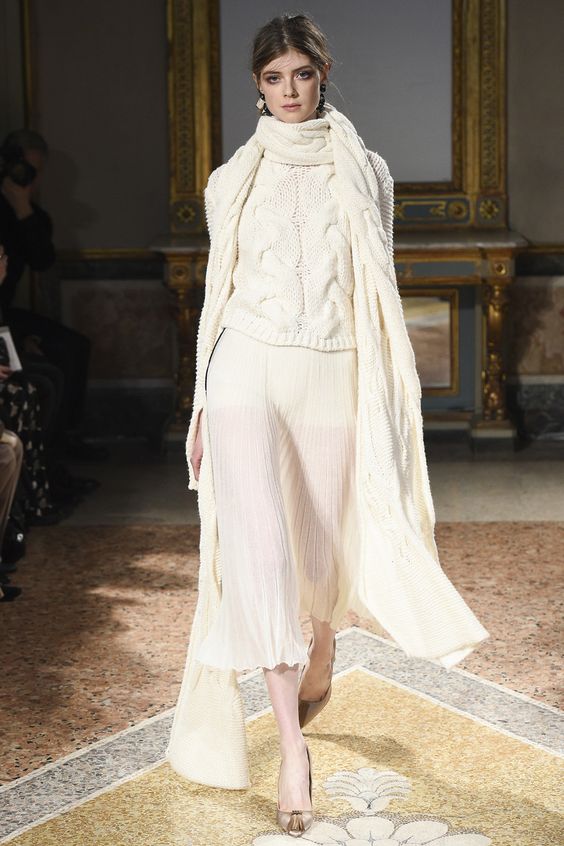 Une attention particulière a été portée à la féminité et à l'élégance lors de la création de foulards. C'est pourquoi les étoles larges, ainsi que les produits à franges, fourrures et pompons, seront pertinents.