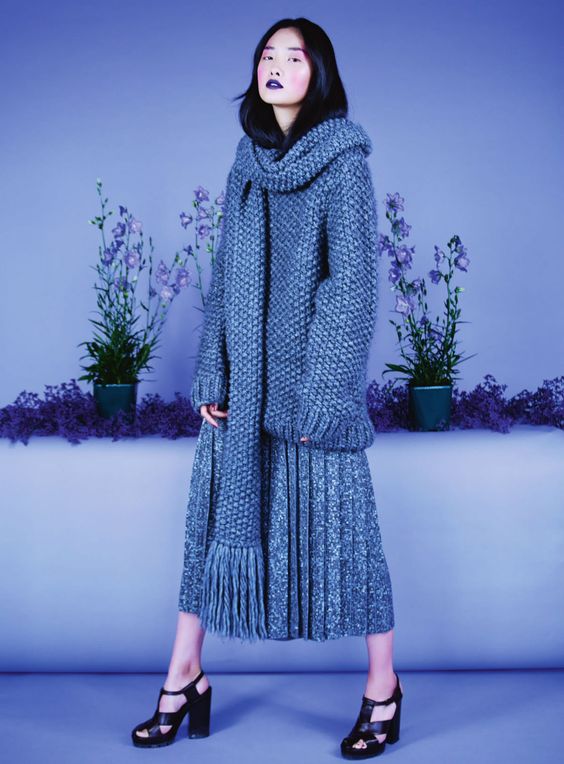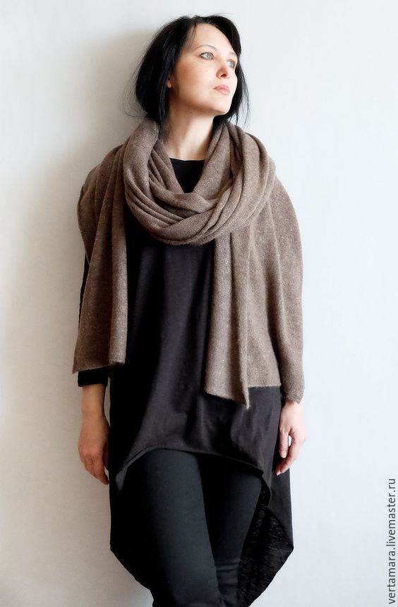 Si vous mettez l'étole sur une épaule, l'image a immédiatement un aspect plus romantique et féminin. Certaines filles le portent comme un poncho, en le complétant par une fine sangle. Et bien sûr, le palatin n’est pas moins élégant si vous l’enroulez autour du cou. Le plus souvent, une telle écharpe est combinée avec une veste décontractée ou un manteau élégant.