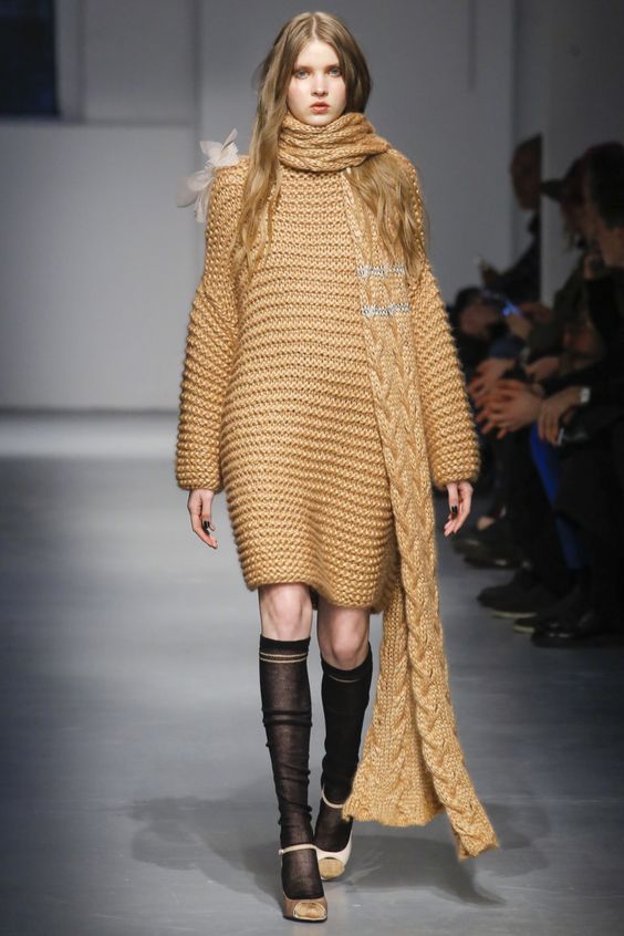La nouveauté de la saison automne-hiver est une manche en foulard. Une caractéristique d'une telle écharpe est sa coupe. En réalité, on dirait que les manches d’un pull tricoté sont cousues ensemble.