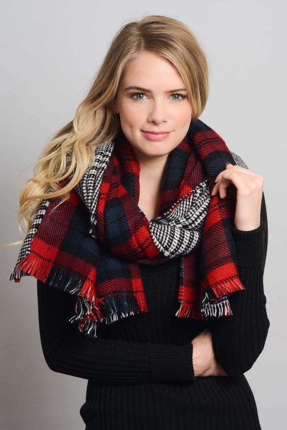 En ce qui concerne les empreintes, la cage reste la plus populaire. Ce sont ces écharpes très faciles à combiner avec des images pendant la saison froide. Dans la tendance, on trouvera également des bandes, des broderies et des motifs abstraits.