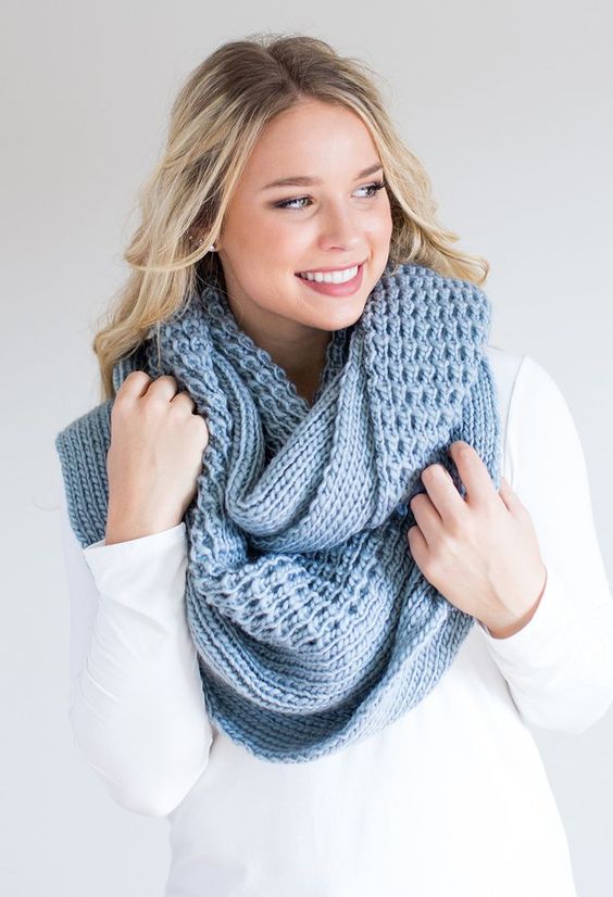 Malgré toute la variété des foulards, ce sont les produits tricotés qui occupent toujours une place de choix. Ils sont très élégants et volumineux, donc tout le monde les choisit, peu importe son âge. En fonction de la longueur du foulard et du tricot, vous pouvez le combiner à la fois au look de tous les jours et à de somptueux manteaux de fourrure.