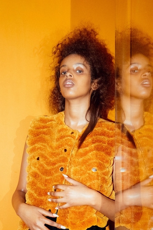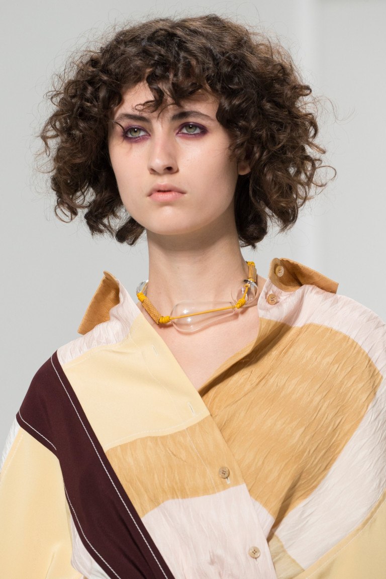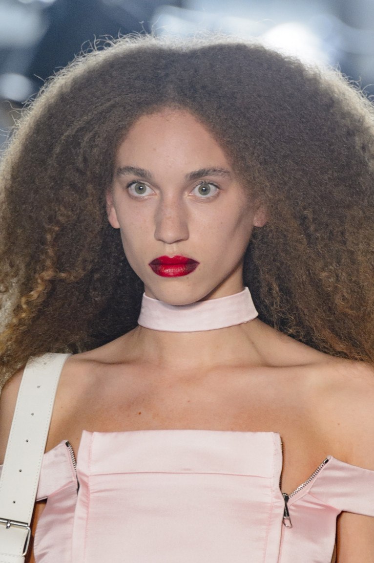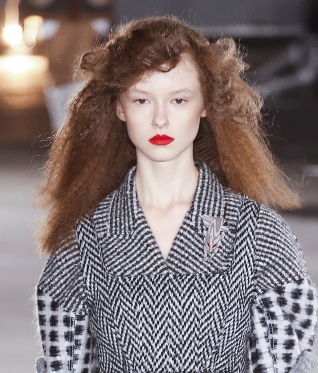 Les courbes texturées donnent à l’image un aspect décontracté, en particulier lorsque vous n’avez pas besoin de paraître formel. Les boucles cassées en 2026 ressemblent davantage à la barbe à papa, à la paille et au toison des années 80. Un maquillage parfait, une tenue stylée bien ajustée et des épaules redressées complètent à merveille le style créatif des cheveux féminins aux cheveux très, très bouclés. Une telle coiffure de paille est très facile à faire à la maison, surtout avec l'aide d'un fer à repasser avec une buse de petite ondulation.