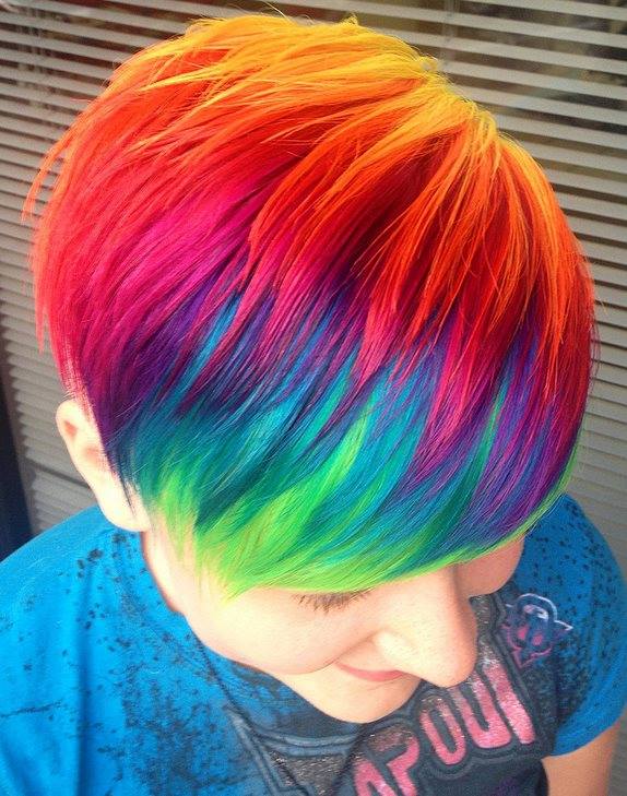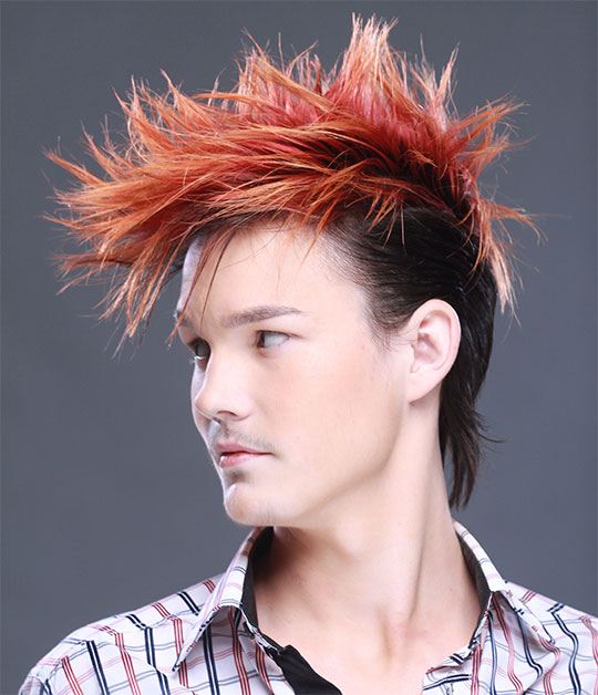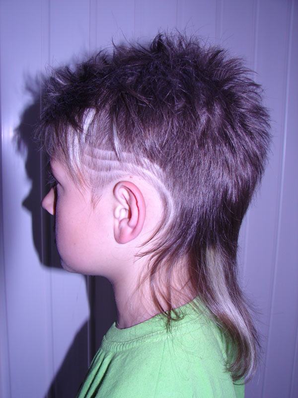 Pour rendre toute coupe de cheveux plus impressionnante, vous pouvez faire appel aux services d’un styliste qui peut offrir à votre fils une coloration à la mode. La mèche de cheveux décolorée à l'arrière de la tête suscitera certainement un vif intérêt de la part des autres. Sur les cheveux noirs, cela semble inhabituel et accrocheur. Des fils multicolores seront appropriés si le garçon va avec une telle coiffure à une fête amicale, à la fête d'anniversaire de quelqu'un, à une discothèque. Et une solution aussi moderne ne convient guère à la visite d’un établissement d’enseignement général.
