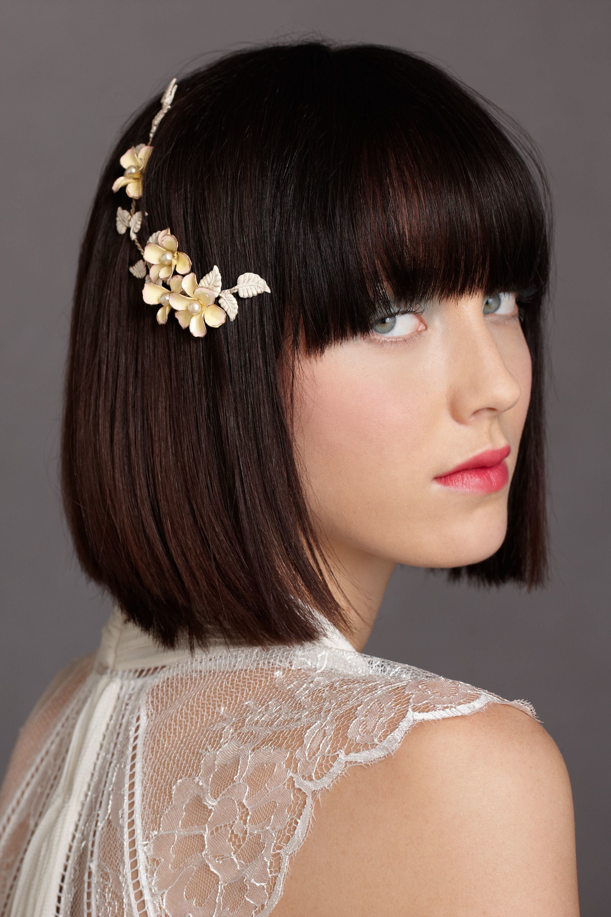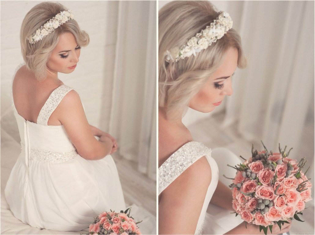 Pour les mariées aux cheveux courts ou aux coiffures moyennes, les stylistes recommandent des coiffures simples et concises utilisant divers accessoires (rubans, bandeaux, épingles à cheveux et fleurs fraîches). Le naturel est à la mode aujourd'hui, il est donc préférable de refuser un style complexe et des boucles vernies qui ne semblent pas naturelles. Si vous avez les cheveux courts, les stylistes conseillent de ne pas porter de voile et de concentrer toute votre attention sur la coiffure.