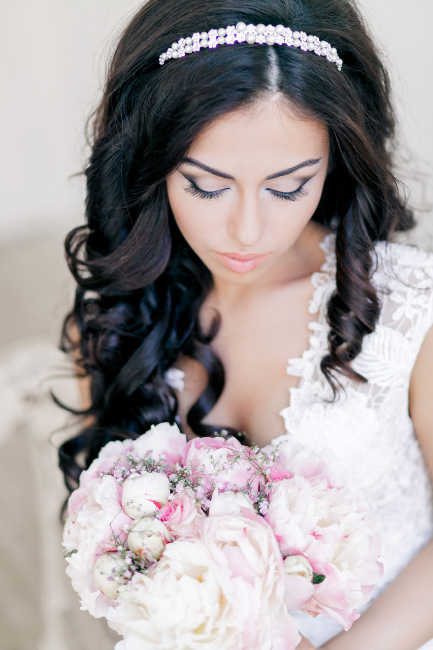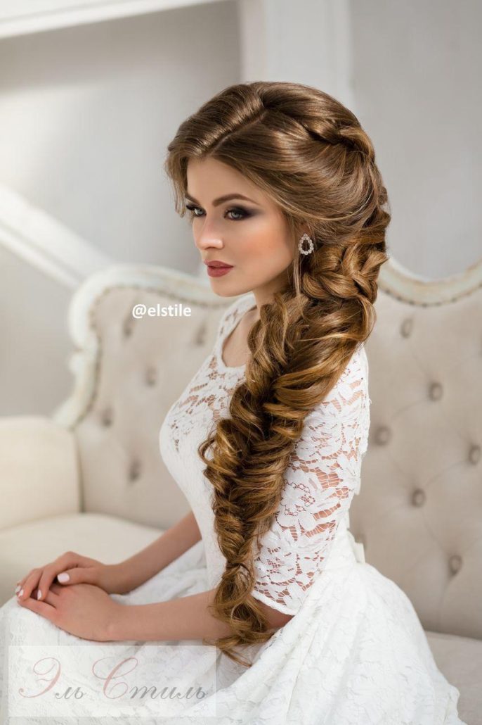 La mariée aux cheveux longs était plus chanceuse que quiconque, car le choix des options de coiffure de mariage pour eux était presque illimité. Quiconque ne veut pas s'embarrasser d'une coupe de cheveux peut simplement tordre les extrémités, laissant les cheveux lâches. Cependant, dans ce cas, il est important que les cheveux soient bien coiffés. Par conséquent, quelques semaines avant la célébration, les coiffeurs recommandent un programme complet de soins capillaires.