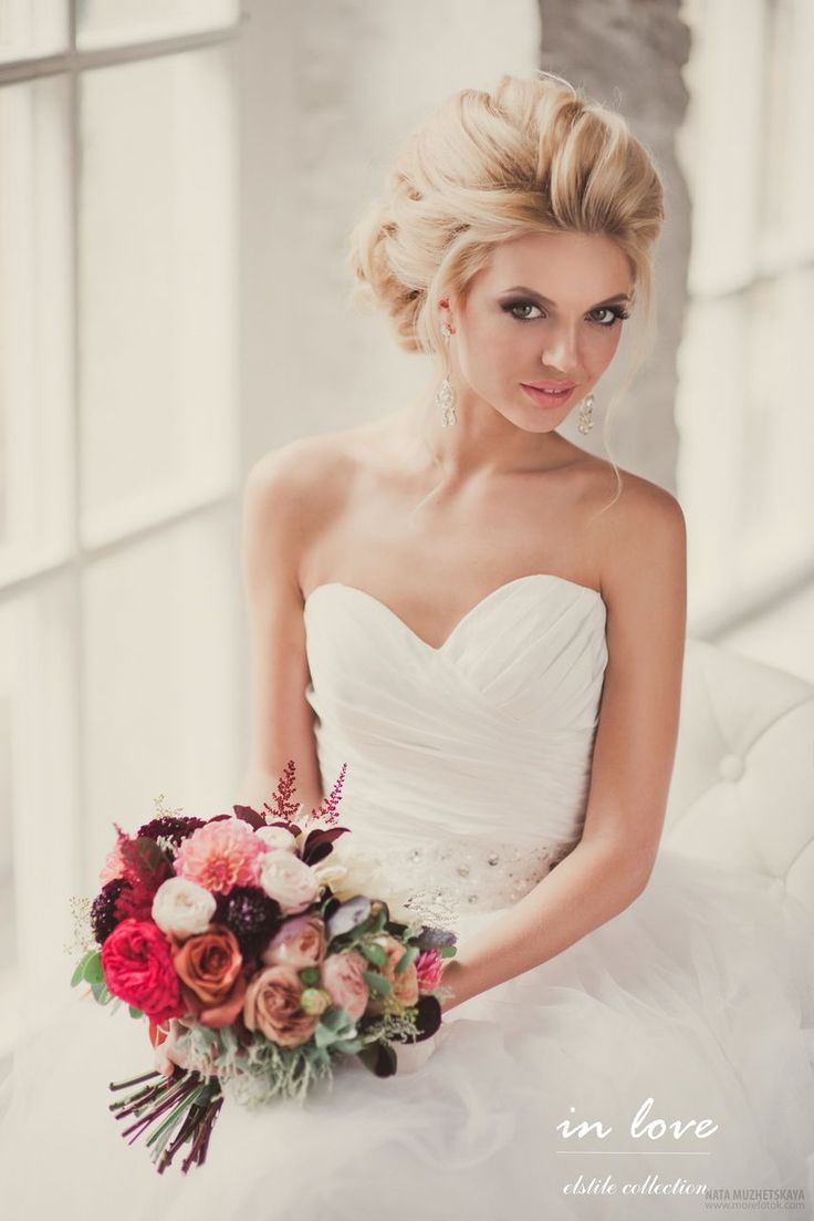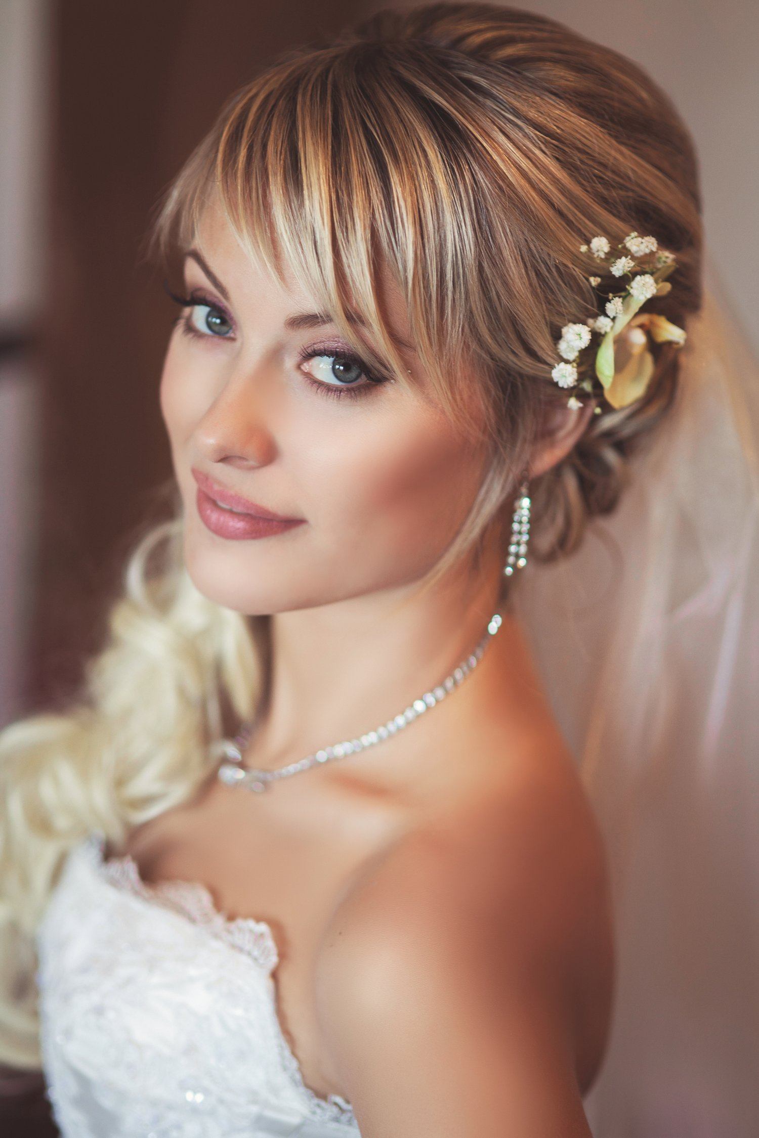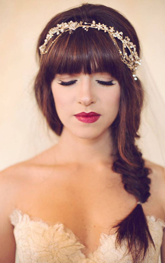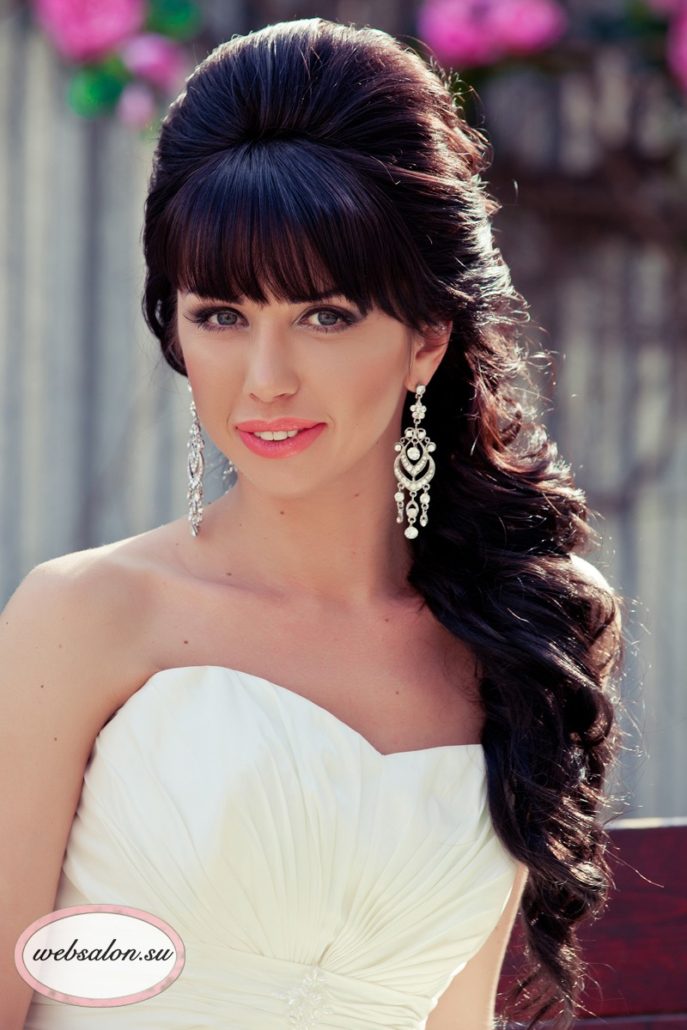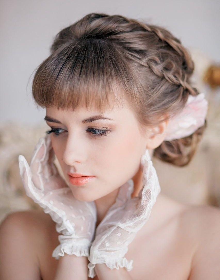 Si vous portez un bang, alors la coiffure de mariage devra être prise très au sérieux. Lors du choix, il est important de se concentrer non seulement sur la forme du visage, mais également sur l'image dans son ensemble.