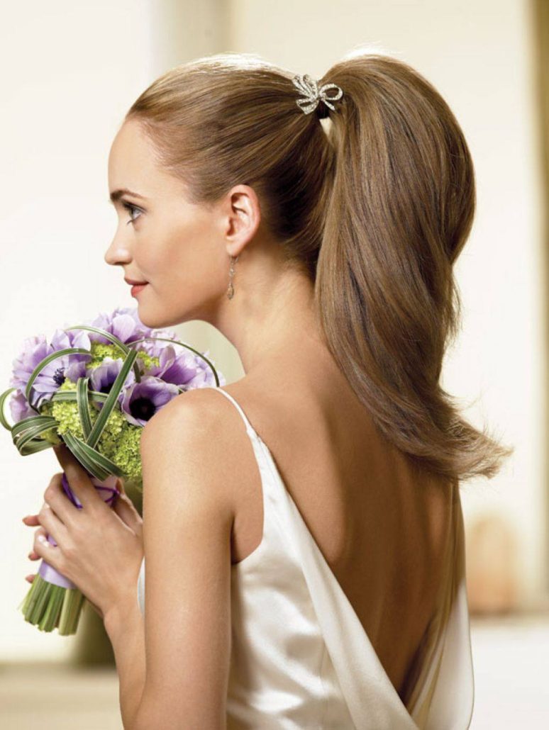 Étant donné la mode du naturel, les filles aux cheveux lisses peuvent simplement les collecter dans une queue, ce qui leur donne un voile. Ou vous pouvez boucler vos cheveux en de belles boucles qui tomberont librement sur vos épaules ou viendront ensemble dans une coiffure simple.