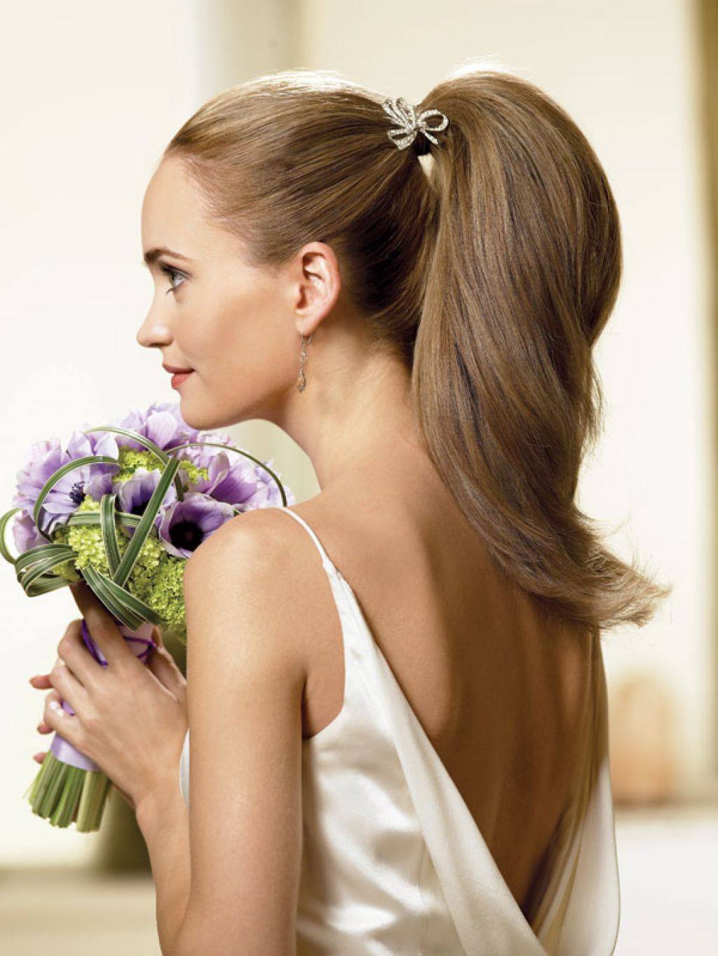 Lors de défilés de mode, on pouvait noter des cheveux parfaitement lisses. Cette coiffure convient aux cheveux de toute longueur, donnant à la mariée un look séduisant. Ce style a fière allure avec de grandes boucles d'oreilles.