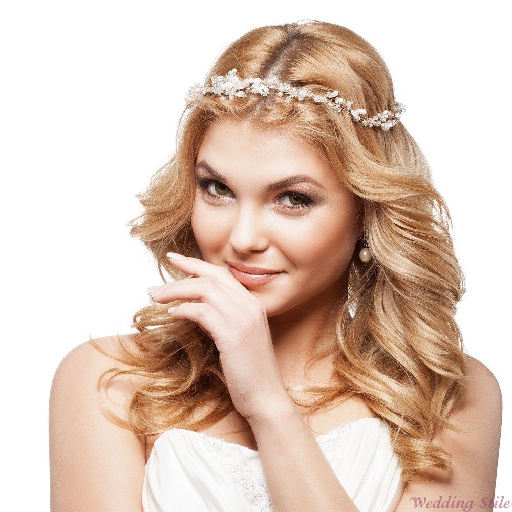 Le diadème est combiné avec succès avec une frange, des boucles ou une faux. Parfois, cela devient un ajout à voiler. Pour démontrer la beauté de l'accessoire, il est préférable de ne pas faire une coiffure complexe à plusieurs niveaux. Idéalement, les cheveux seront légèrement surélevés à l'arrière et peignés en douceur à l'avant.