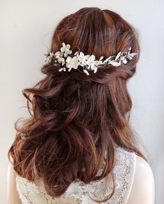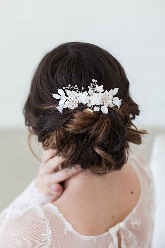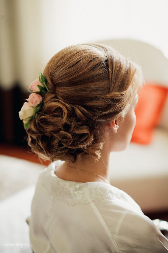En ce qui concerne le décor supplémentaire, dans ce cas, il n'est pas du tout nécessaire de l'utiliser. En effet, beaucoup de mariées attachent un voile et il est vraiment magnifique. Mais, si vous ne prévoyez pas d'acheter un voile, vous pouvez décorer la coiffure avec un beau diadème, un cerceau. Les pinces à cheveux et les fleurs miniatures ne sont pas moins élégantes sur les cheveux.