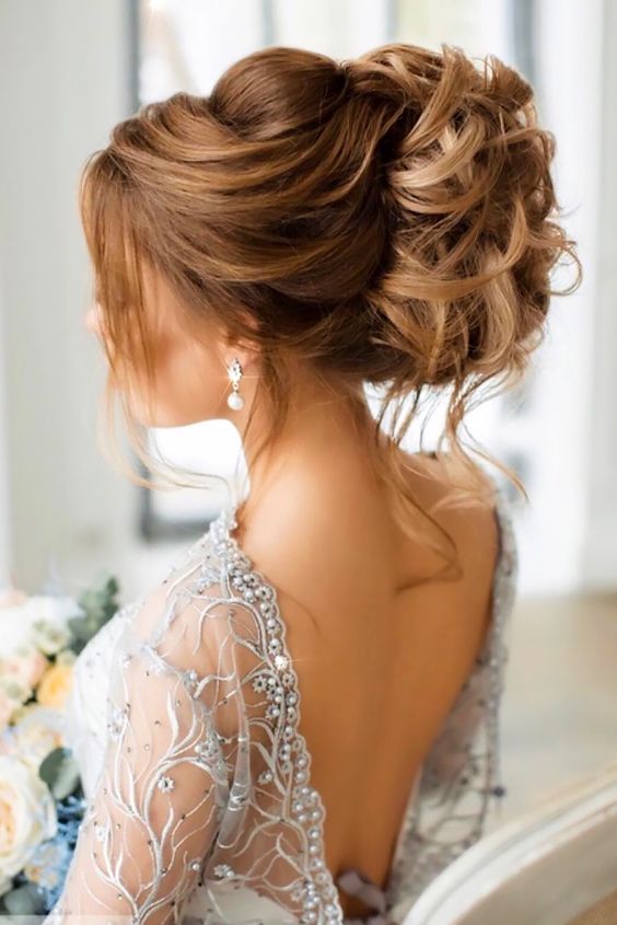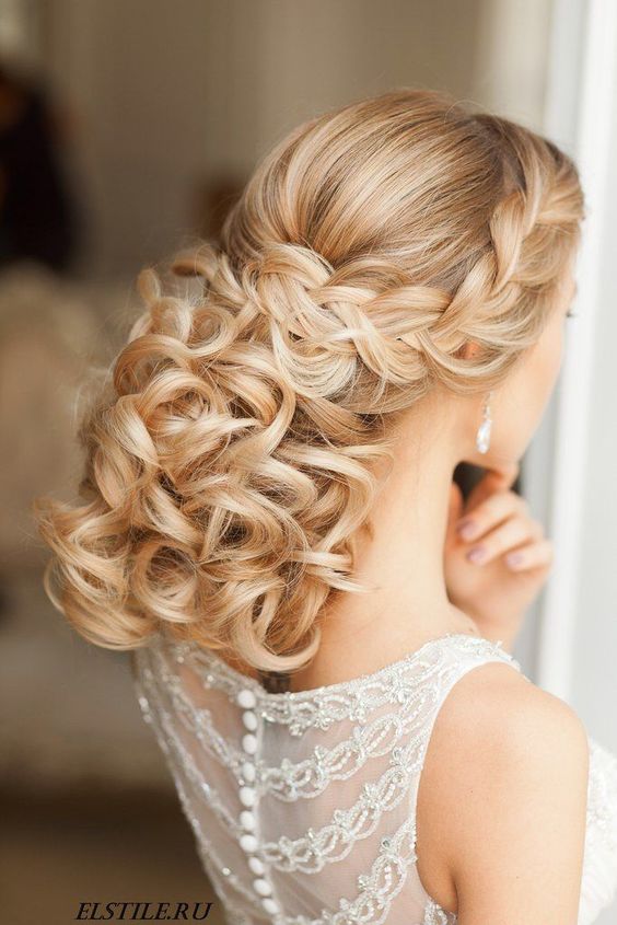 Ceux qui choisissent eux-mêmes une robe de luxe avec un décor supplémentaire doivent regarder les coiffures laconiques. Par exemple, les boucles ou les cheveux soigneusement recueillis sont parfaits. De ce fait, l'image sera plus harmonieuse.