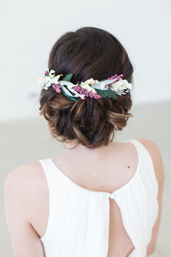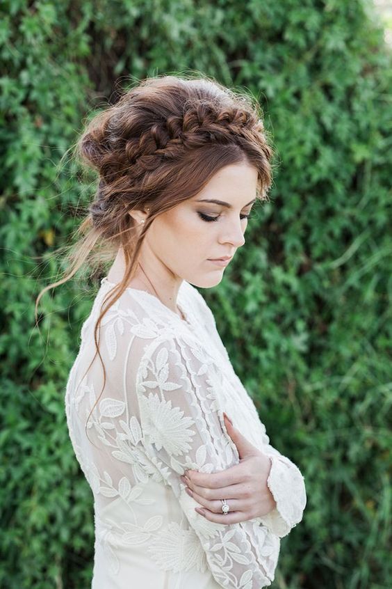 Il convient de noter que ces coiffures sont un excellent ajout à des robes concises dans le style de boho. Il peut aussi s'agir de tissus translucides avec de la dentelle. En tout cas, la mariée dans cette image est l'incarnation du charme et de la vraie féminité. Par conséquent, assurez-vous que les photos sont incroyables.