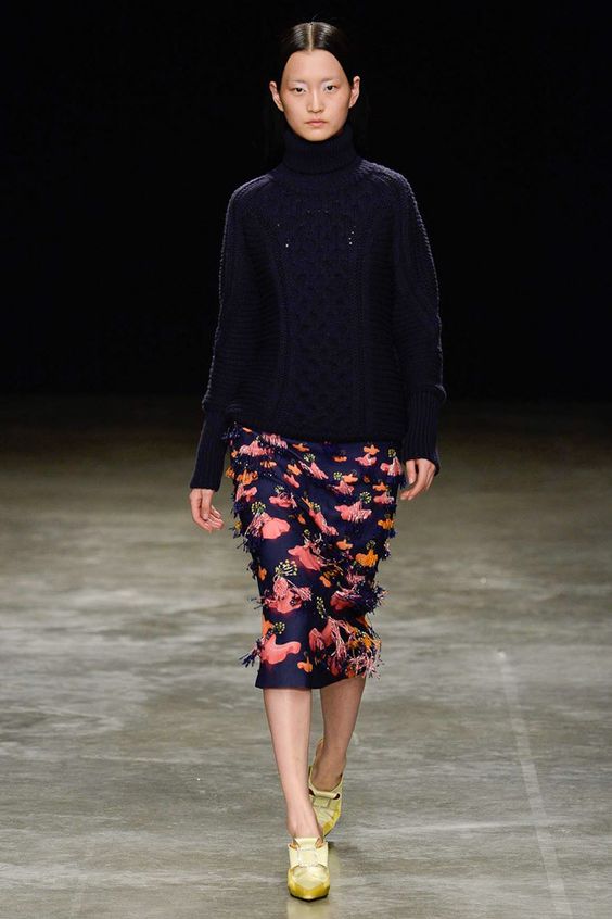 De plus, une attention particulière a été portée aux vêtements dans une nouvelle palette de couleurs. Malgré le fait que la saison d'automne implique des nuances plus sombres, les concepteurs prétendent qu'il y a une place pour les couleurs claires. De tels vêtements rendent l'image plus fraîche et légère.
