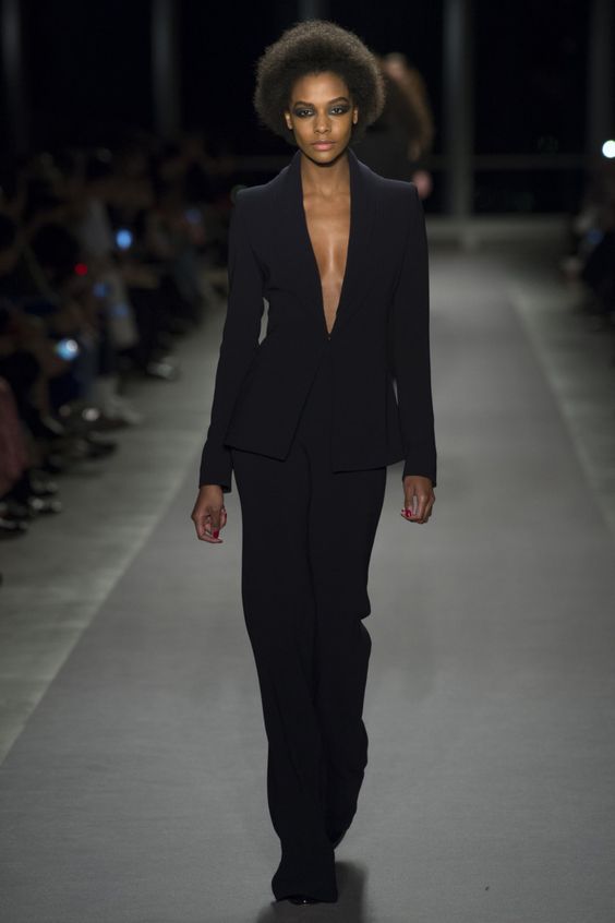 Le noir profond n’est pas la première année parmi les plus en vogue. C'est assez universel, basique, donc ça convient absolument à tout le monde. Le plus souvent, les créateurs l'ont choisi pour créer des vestes, des costumes et des robes. Nous vous recommandons de regarder de plus près ces éléments de la garde-robe.