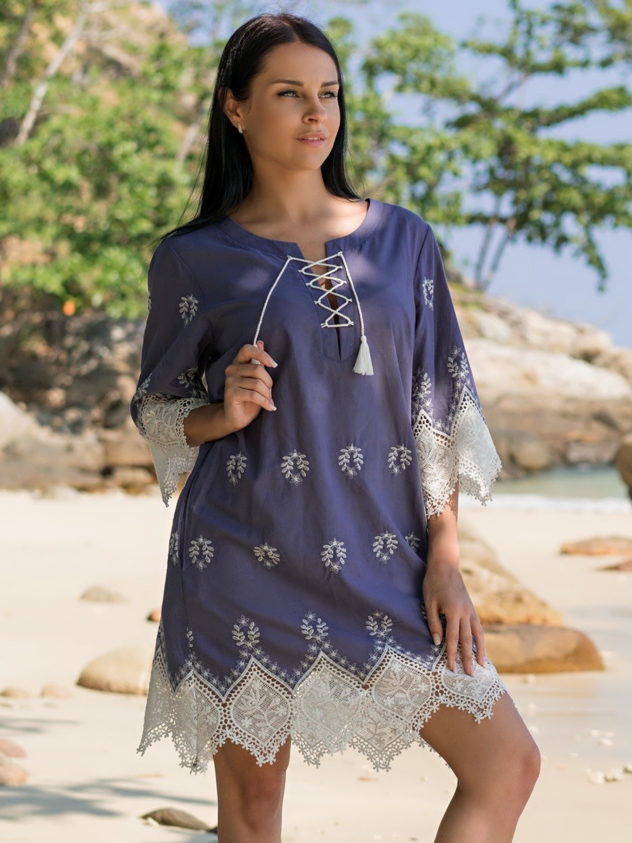 Pour coudre des tuniques de plage, on utilise des tissus légers et fluides. Si on les compare à la saison dernière, en 2026, ces vêtements sont plus puritains et moins translucides.