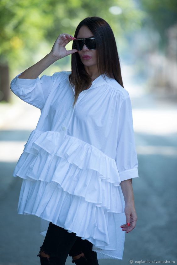 Beaucoup pensent que l'asymétrie est révolue depuis longtemps, mais c'est loin d'être le cas. Aujourd'hui, l'asymétrie est partout. En ce qui concerne les tuniques, ces options semblent très appropriées et efficaces. Ce style de vêtement convient aux femmes de tout âge et de tout physique. Une tunique asymétrique est très appropriée en combinaison avec des leggings, des pantalons, des shorts, des jeans et même des collants en nylon simples de toutes les couleurs. Avec une coupe de ce genre, il est très simple d'expérimenter vos images. Ainsi, les femmes peuvent exprimer leur individualité, leur sens du style et leurs goûts.
