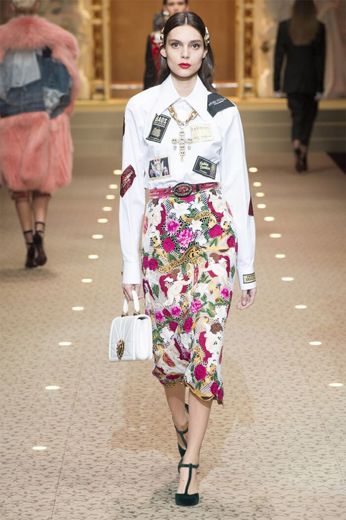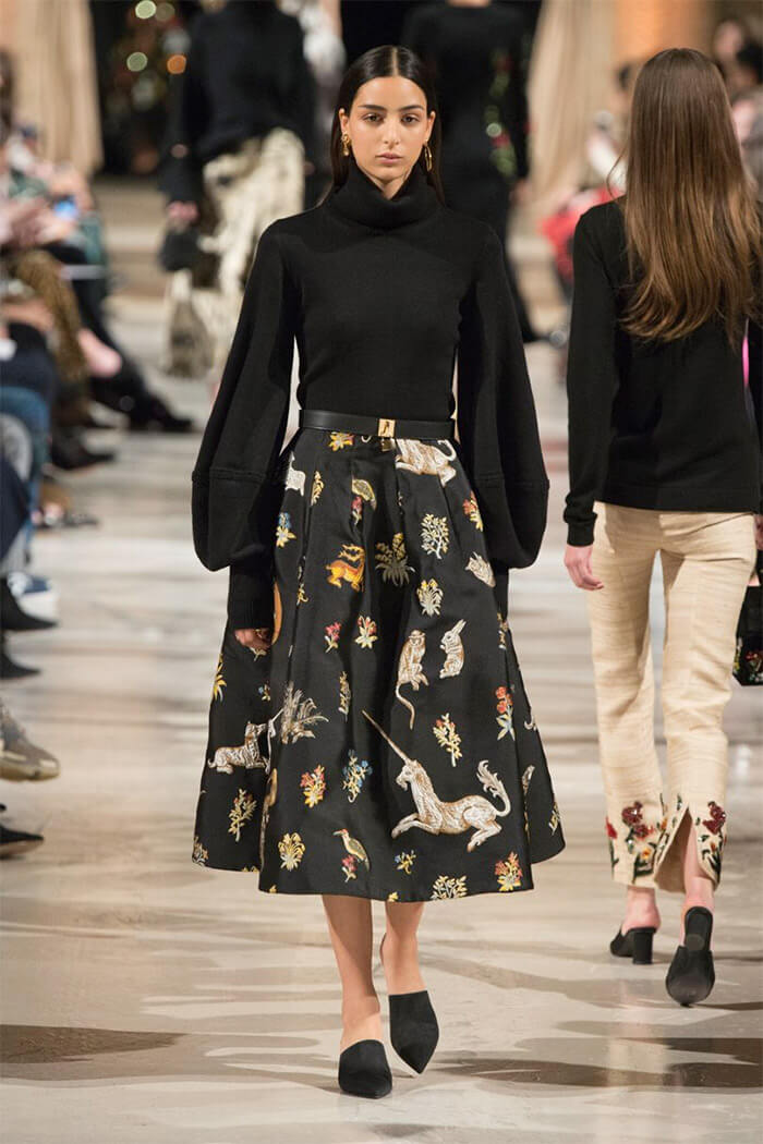 Les jupes midi classiques sont de nouveau à la mode. Ce sont des jupes qui atteignent une taille juste en dessous des genoux. Jusqu'à récemment, elles étaient considérées comme "anciennes" et "laides", mais les concepteurs ont complètement changé les mentalités de nombreuses filles. Des variantes de trapèze, de silhouette A et même de coupe droite sont à la mode, qui peuvent être complétées par une coupe peu profonde ou une odeur libre. Comme les jupes midi ont l’air très «habituelles», les concepteurs ont trouvé un moyen de résoudre ce problème. Ils ont complété les jupes avec des empreintes de cellules, de rayures et de fleuristerie.