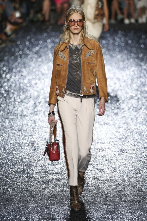 En ce qui concerne les éléments de décoration, ils sont assez nombreux. Les designers décorent avec audace les vestes modernes avec des franges, des inserts en cuir inhabituels, des rivets et des boutons stylés. Il est impossible de ne pas mentionner que la tendance sera à nouveau de la broderie. On peut le voir non seulement sur les vestes, mais aussi sur les blousons bombardiers et même les coupe-vent. C'est très féminin.