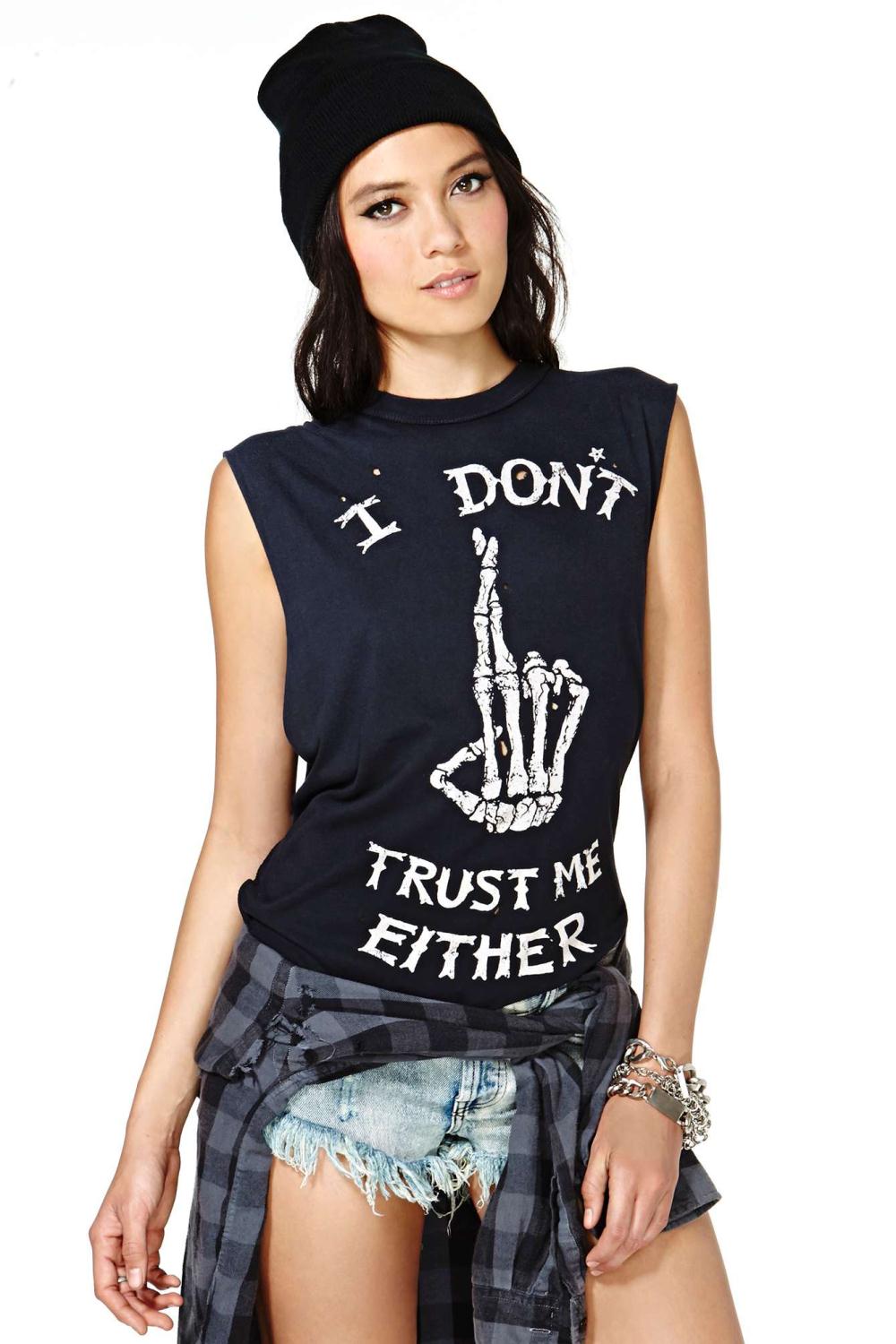 En été, il n'est pas habituel de marcher dans le noir, car le noir attire les rayons du soleil, ce qui crée une gêne, même par temps chaud. Cependant, un débardeur noir est une chose universelle dans une garde-robe d'été. Les variantes noires des t-shirts classiques ne nous ont apporté aucun changement durant la saison estivale. La seule réserve concerne les inscriptions délibérées et informées, qui peuvent être utilisées pour caractériser le propriétaire. Les photos de t-shirts noirs, qui vous sont proposées pour étude, prouvent parfaitement que le noir peut également être porté par un été chaud. Une femme peut choisir une chemise en fonction de son humeur. Quelles émotions sont un tel produit. Et pas toujours une chemise noire indique une humeur pessimiste. Si le noir est une partie essentielle de l'image, pourquoi l'utiliser au maximum?