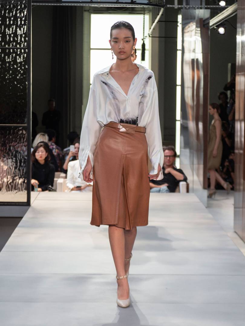 En 2026, la tendance est aux chemises en cuir inhabituelles et très élégantes. Les designers expérimentent et créent des modèles incroyables qui tombent en amour avec les modeuses. Par exemple, Viva Vox, utilisant un cuir gris très doux, a fabriqué un chemisier à manches de gants et Mugler a créé une version de bureau élégante d'un chemisier en cuir noir. Tamuna Ingorokva a proposé un simple t-shirt en cuir bleu avec des poches appliquées et sans col.