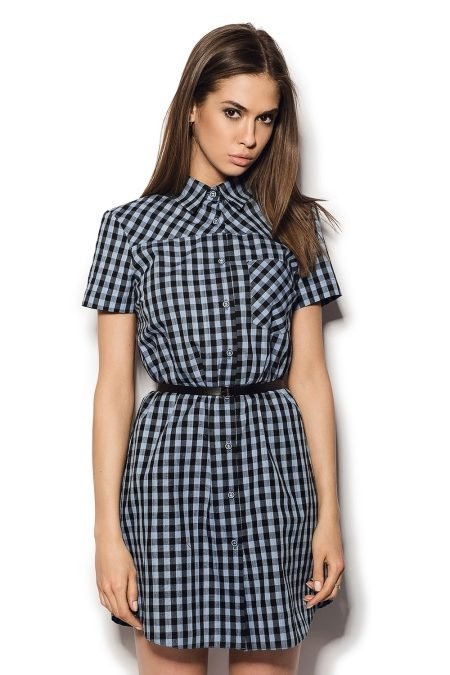 - Robe - chemise - style strict. Il est facile à combiner avec une ceinture en cuir, un foulard en soie et des chaussures à talons hauts. Cette tenue met en valeur le charme, la féminité et la simplicité.