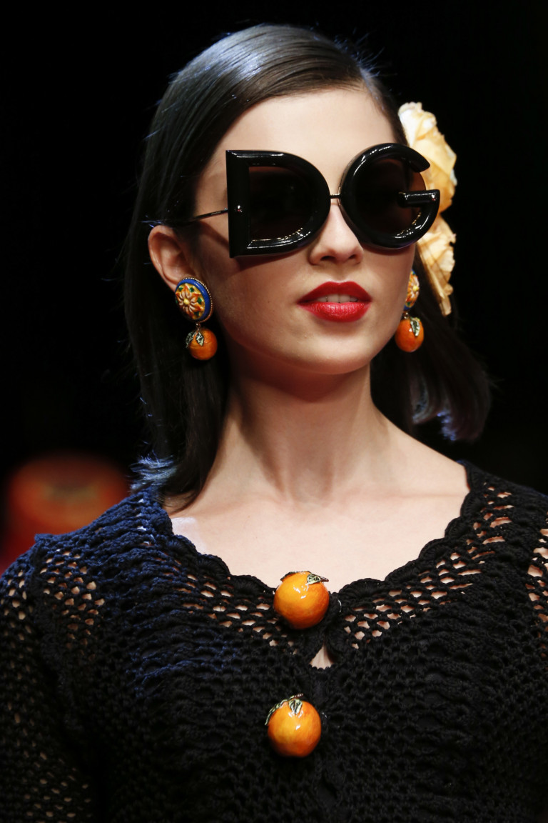 Au printemps, les lunettes de soleil sont également populaires et très demandées, comme en été. Et les lunettes de soleil à la mode de la célèbre marque Dolce & Gabbana sont présentées dans le thème estival, qui rappellera sûrement au début du printemps l'apparition imminente de la saison chaude. Même au printemps, les rayons ultraviolets solaires sont dangereux, il est donc nécessaire de protéger les yeux de leurs effets. Les concepteurs de la marque ont impressionné par leur approche créative pour créer d’intéressants modèles de lunettes de soleil. Les modèles sont très féminins et attrayants. Quel est le cadre sous la forme d'un arrangement de fleurs ou d'un stylo femelle sophistiqué. Auparavant, les stylistes ne recommandaient pas de combiner des lunettes de soleil décorées avec des vêtements accrocheurs, mais Dolce & Gabbana a brisé depuis longtemps les stéréotypes de combinaisons susmentionnés, ce qui prouve bien la photo de lunettes de mode - 2026. Une femme brillante est brillante en tout!