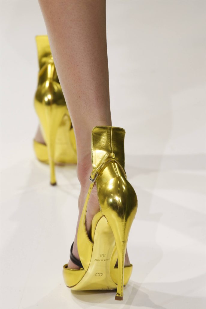 La variété des matériaux utilisés est particulièrement frappante. Sur le podium, on pouvait voir des escarpins en cuir, y compris du cuir verni, du daim et même du velveteen. Beaucoup d'entre eux sont décorés d'arcs, de lanières ou de cravates pouvant souligner avec succès l'élégance des jambes.