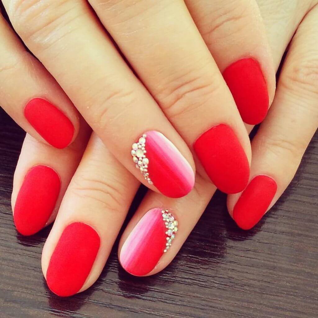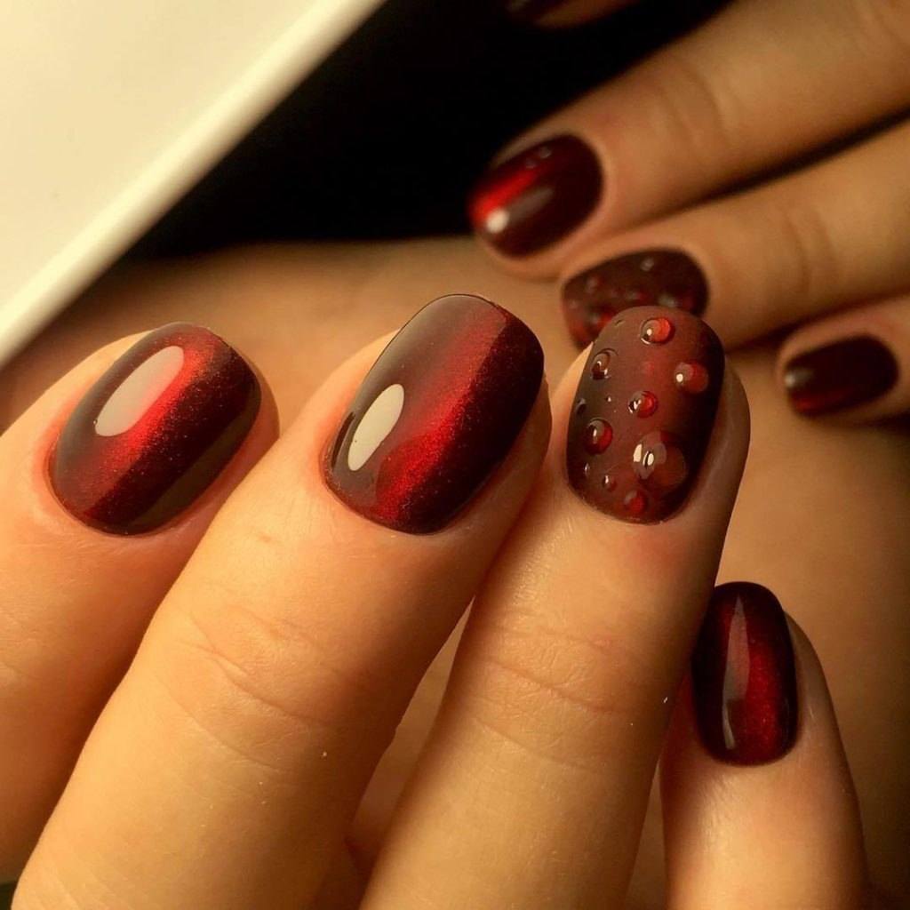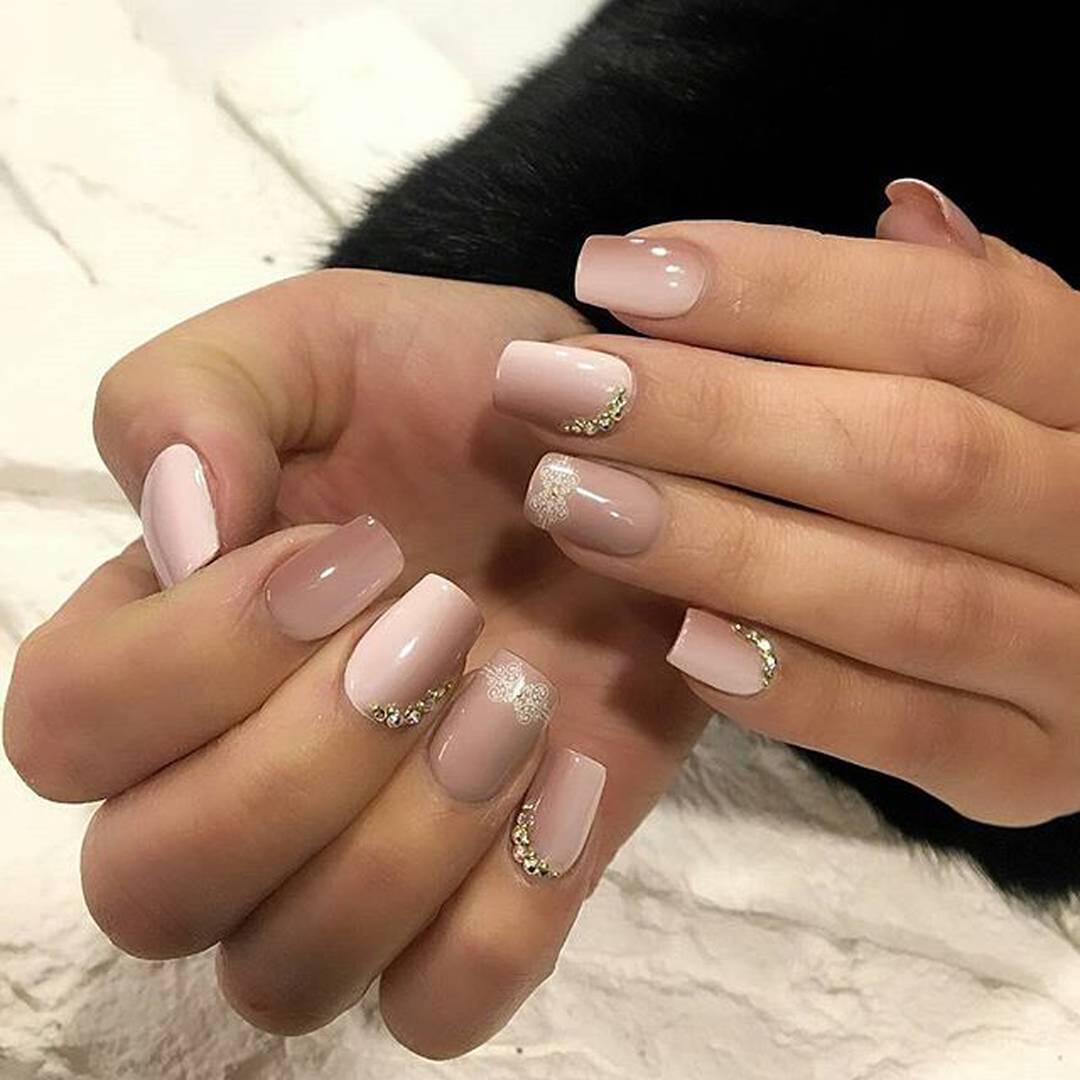 Les strass peuvent être qualifiés de décor universels, car ils ont la même apparence sur toute la longueur du clou. Ils peuvent être disposés selon n'importe quel motif ou appliqués au hasard sur la plaque à ongles. Le placer multicolore a l'air original.
