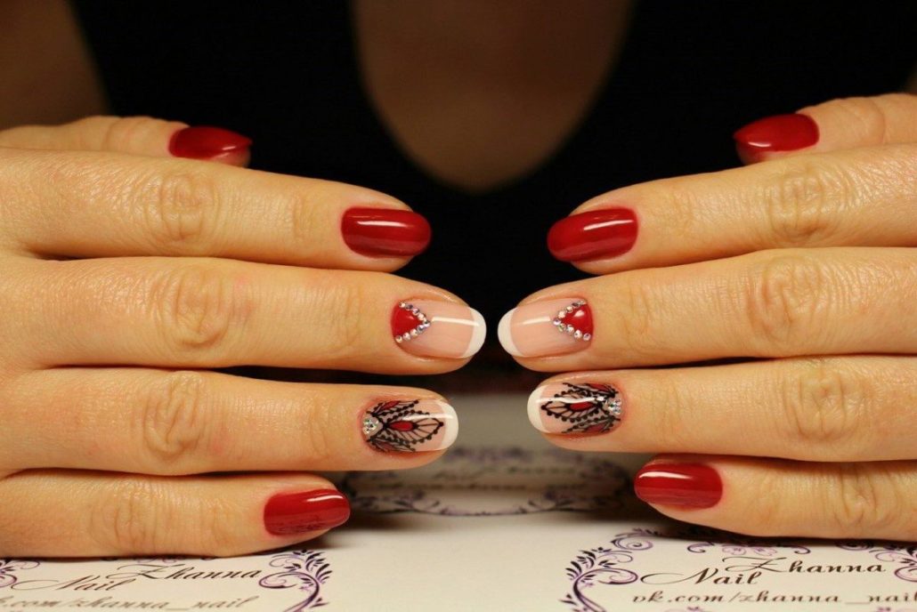 La manucure lunaire à la mode sera également double, c’est-à-dire complétée par des dessins, décorée de strass ou autre.