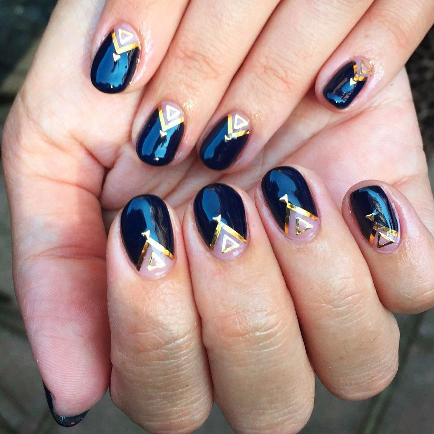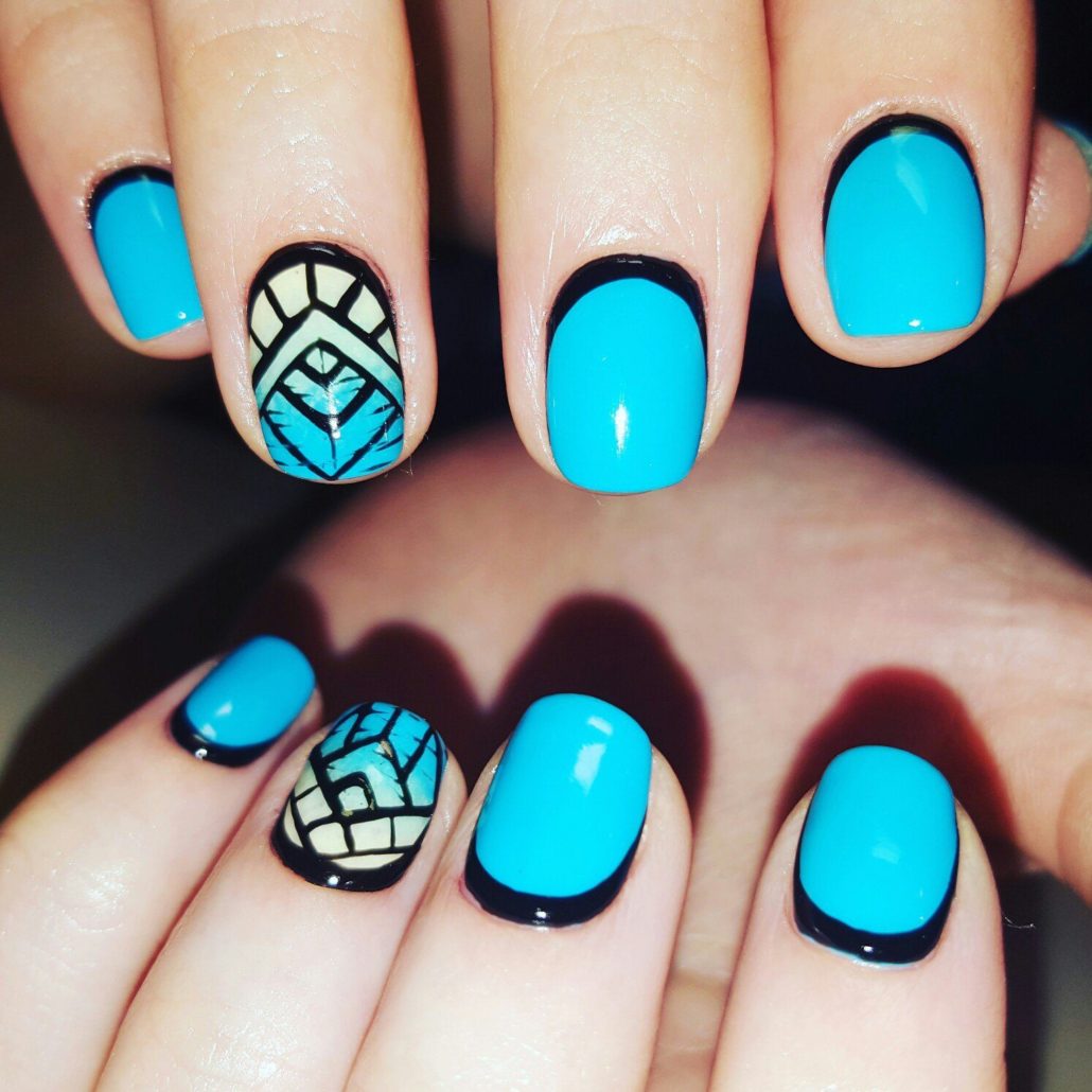 Quels modèles peuvent être appliqués? Absolument tout! Pour commencer, vous pouvez expérimenter avec des rayures et des lignes chaotiques. Si cela vous convient, décorez les ongles avec des triangles, des losanges, etc.