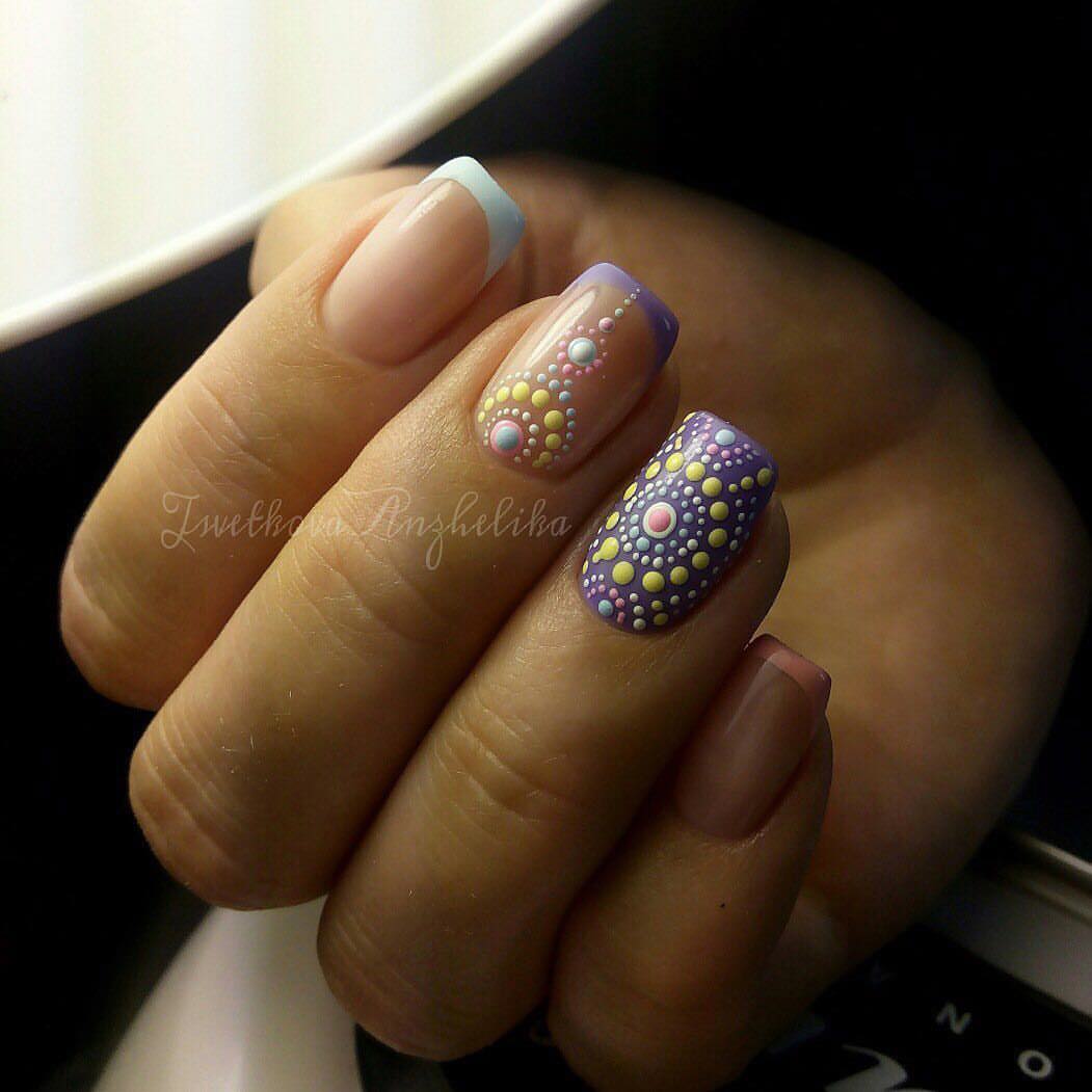 La manucure localisée est idéale pour les ongles courts. Pour que les points soient ordonnés, utilisez les points.
