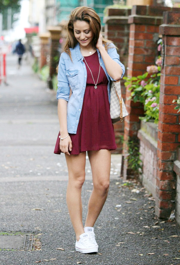 La combinaison d'une robe avec des baskets à la mode n'est certainement pas appropriée pour le sport, vous devez donc choisir avec soin les chaussures pour un tel tandem. De nombreuses collections de baskets ont déjà des modèles distinctifs de la direction sportive standard. Un grand nombre de ces options dans les collections de Reebok, Converse, Nike ou Vans. Ils ont longtemps cessé de ressembler à des baskets ordinaires. Les matières de la robe et des chaussures doivent être bien combinées. Par exemple, les baskets en toile conviennent aux robes d'été courtes, ou les chaussures massives ont une meilleure apparence avec des vêtements épais en laine et tous les modèles de baskets conviennent parfaitement aux robes tricotées. Mais les baskets blanches, même dans un style sportif, conviennent à tous les styles de vêtements et à toutes les tenues.