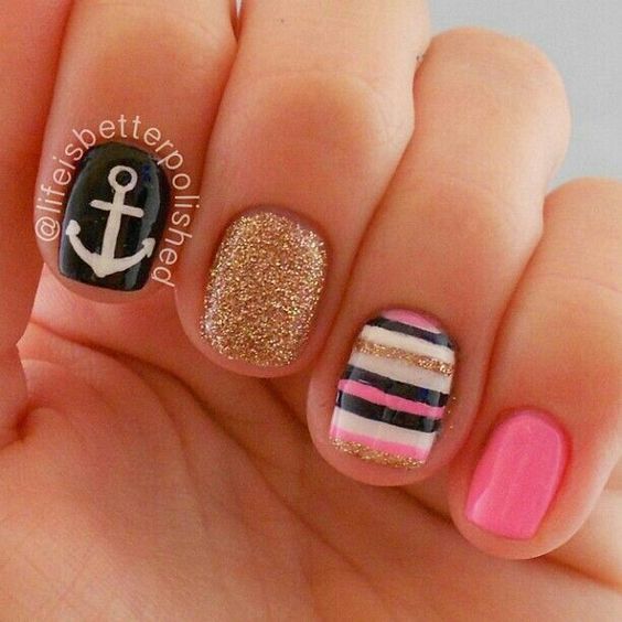 Manucure marine à rayures: élégante et tendance pour les vacances d'été