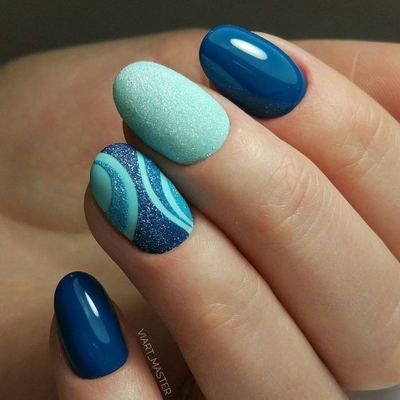 Que faire si en été vous n'avez pas de vacances et que vous voulez choisir une manucure à thème nautique? Il existe un moyen de sortir - faire une manucure abstraite dans les tons bleus, qui convient parfaitement au style de bureau et rappelle la mer et les croisières marines. En regardant une telle conception, vous pouvez rêver du soleil chaud, des activités nautiques estivales et des vacances fabuleuses. Cela met nécessairement en place un positif.