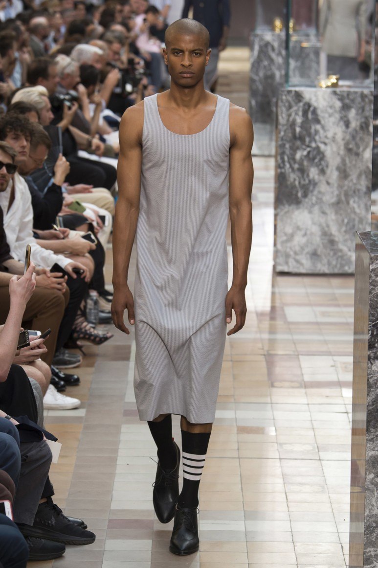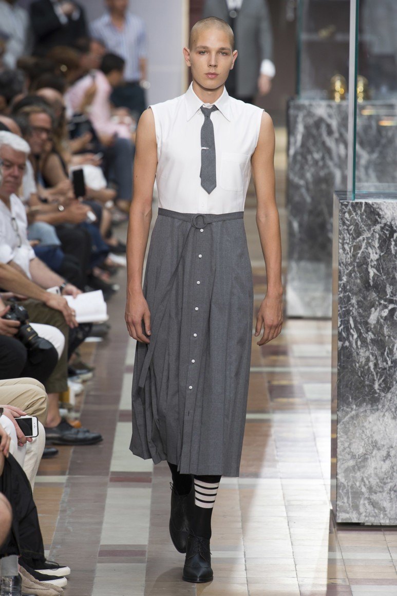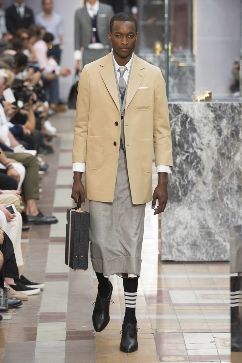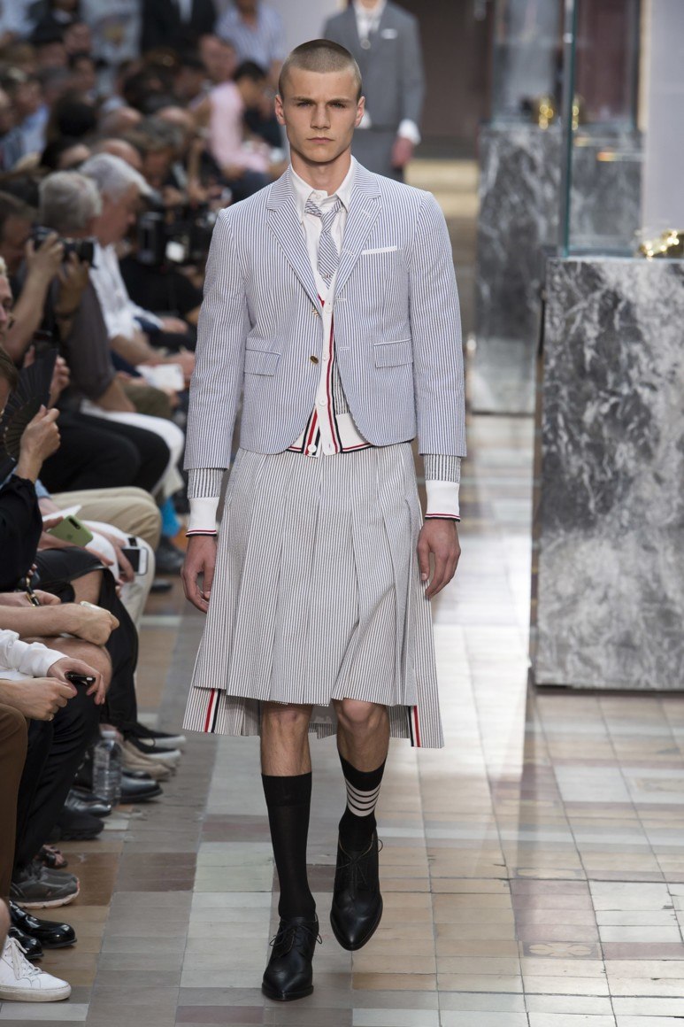 Dans les magasins pour hommes vendus avec succès ... jupes! Et c'est loin d'être une nouveauté. La marque THOM BROWNE propose aux fashionistas non seulement des robes, mais aussi des jupes pour hommes qui se marient parfaitement avec une chemise et une veste classiques. Bien sûr, vous pouvez être scandalisé, mais plus récemment, les femmes ne portaient pas de pantalon et celle qui prenait le risque était considérée comme anormale. Parce que la réaction négative à la jupe des hommes est pleinement justifiée.