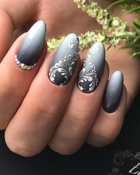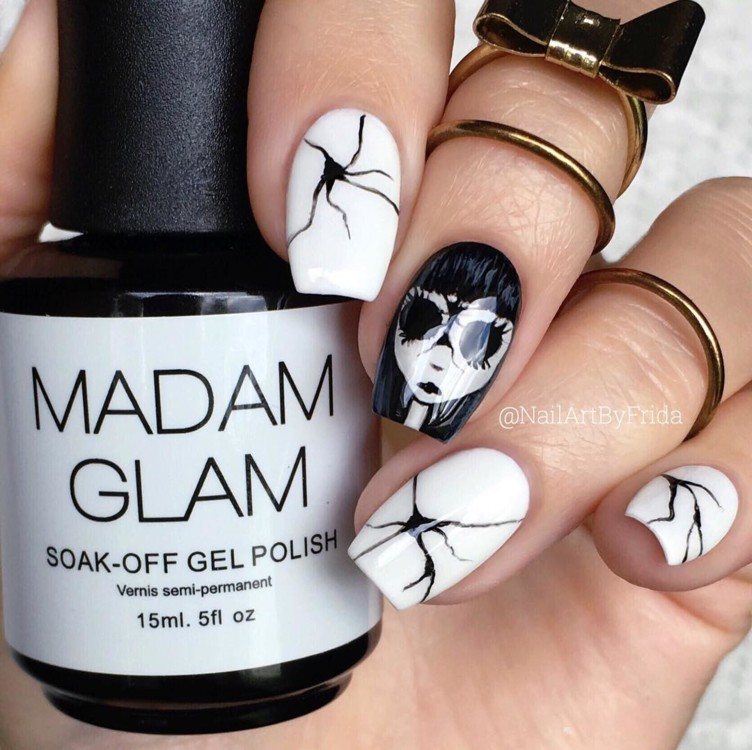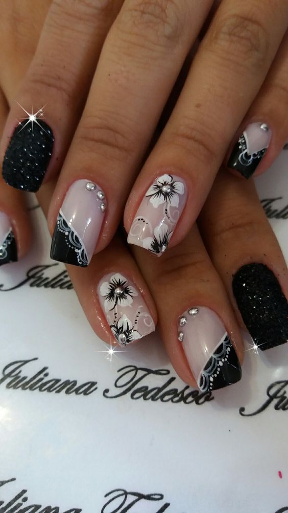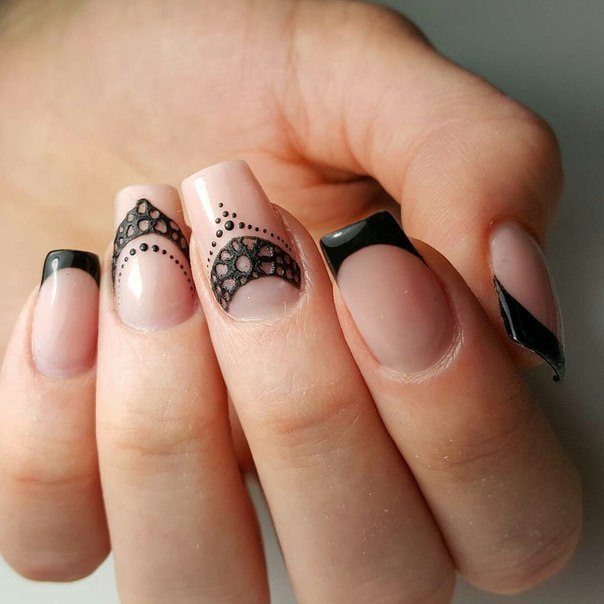 Pour les femmes motivées, la meilleure option pour le travail et les loisirs est une manucure sur des ongles longs dans une version blanche ou noire. Oui oui! C'est en noir! La couleur noire n’est plus considérée comme un enterrement dans le nail art et avec elle, des images élégantes sont créées. Eh bien, la couleur blanche du revêtement lors de la construction des ongles est destinée aux natures sophistiquées et romantiques.