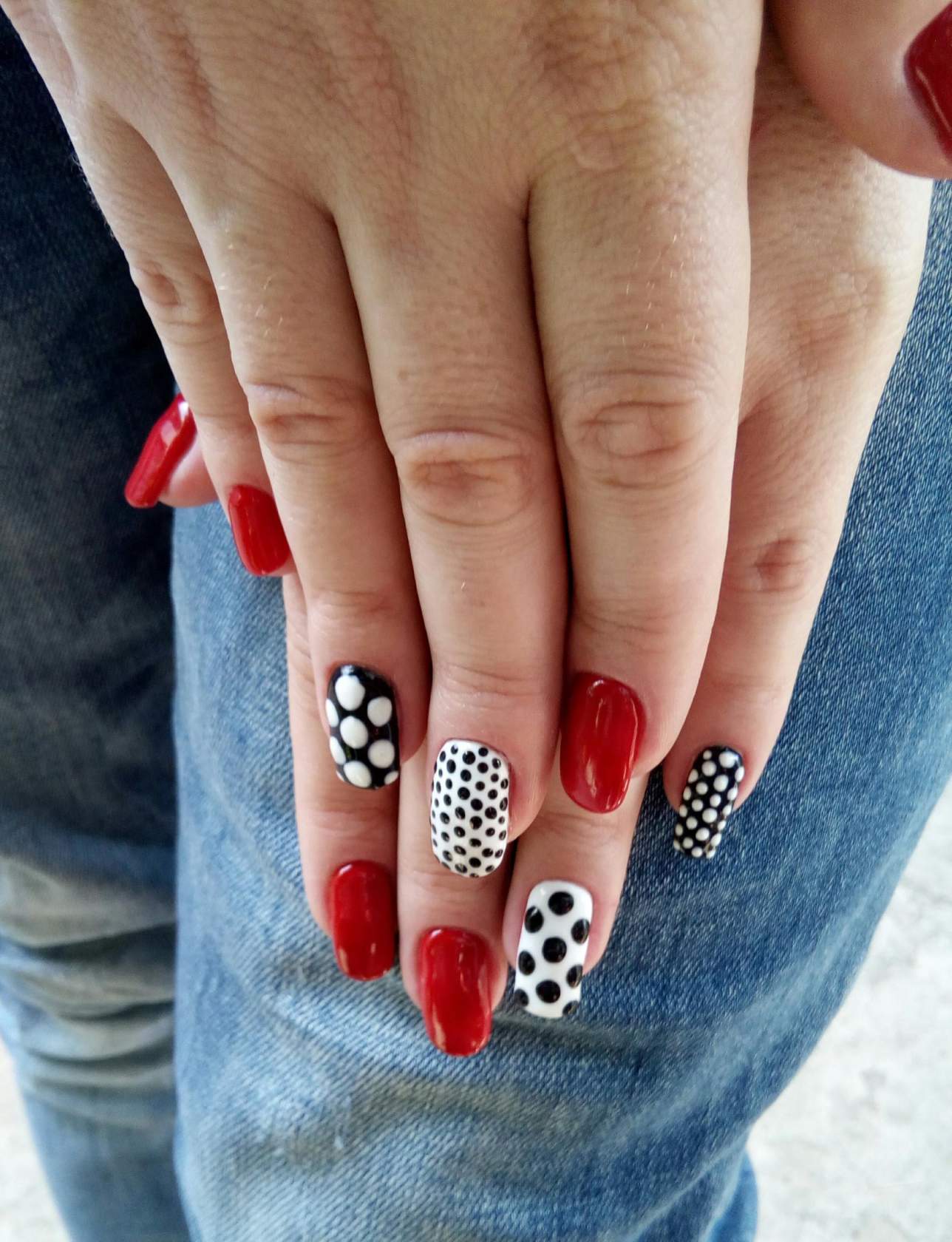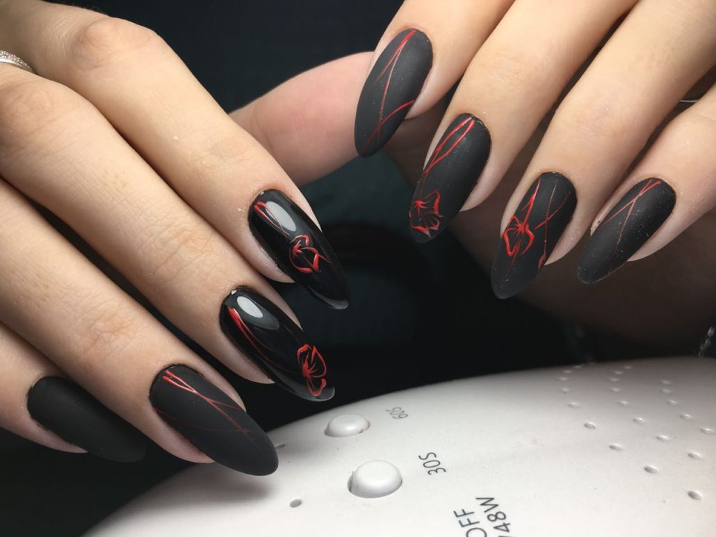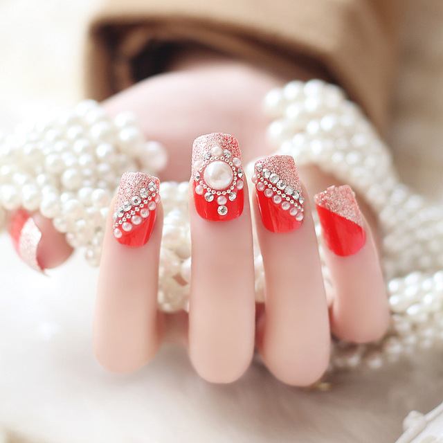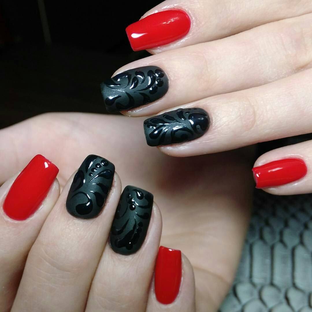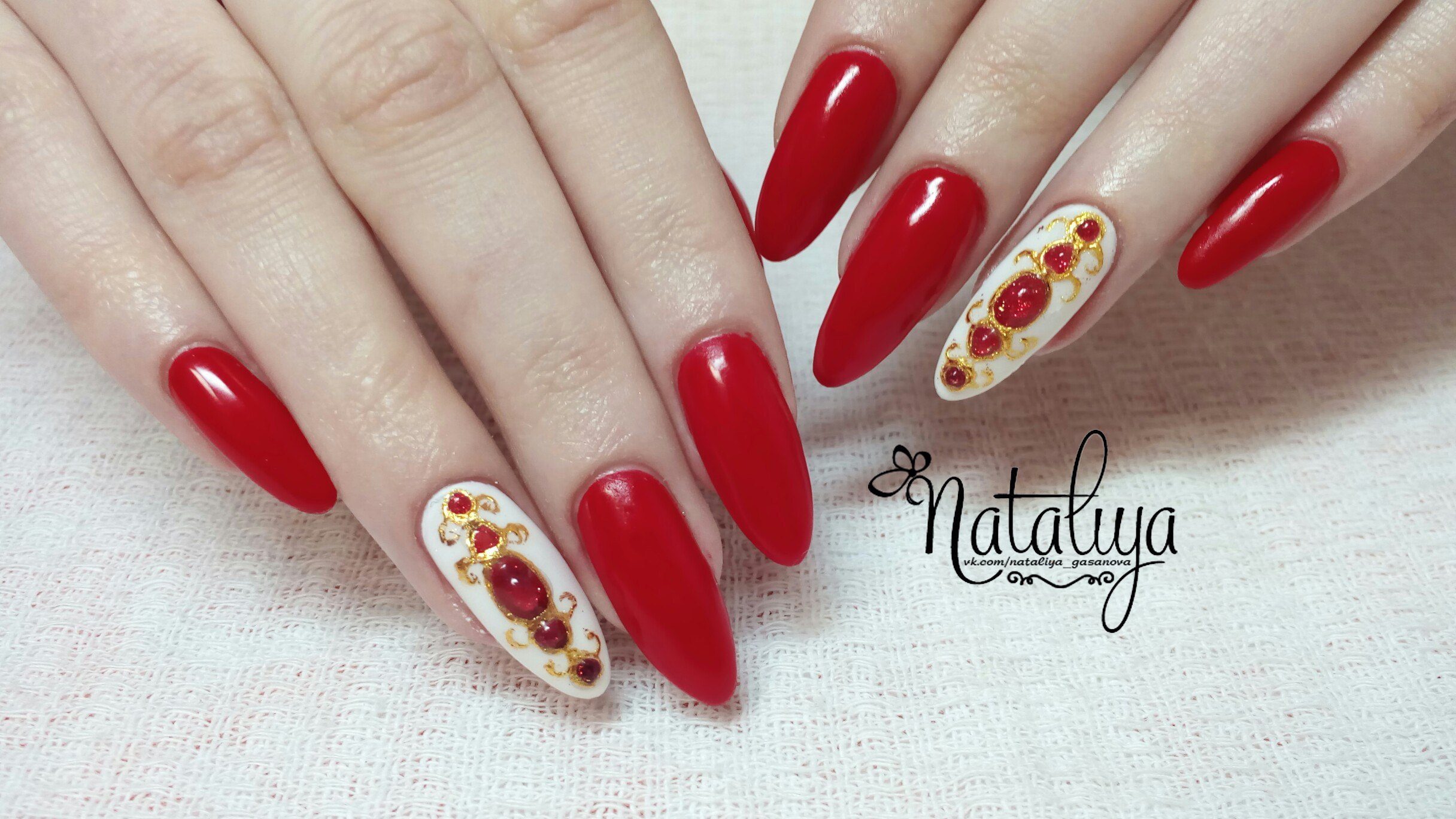 Le revêtement le plus populaire pour les ongles étendus est le rouge ardent. Auparavant, les ongles rouges étaient utilisés pour créer l'image d'une femme vampire, mais maintenant, même les femmes d'affaires préfèrent le vernis rouge. Afin de diversifier la couleur rouge unie, les maîtres manucure ajoutent des nuances d’autres couleurs, des éléments de décoration ou appliquent un beau dessin sur la plaque d’ongle allongée.