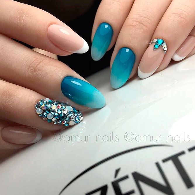 La veste intégrée est très féminine et élégante. Il ne doit pas nécessairement être joué dans un ton blanc traditionnel. Une excellente option est de décorer avec une autre couleur ou même brillant. Bien sûr, la version classique la plus commune de la manucure française, mais les maîtres recommandent aux filles d'être détendues et de mettre en œuvre des idées plus audacieuses, de mettre davantage l'accent et de décider de mesures audacieuses plus proches des tendances de la mode.