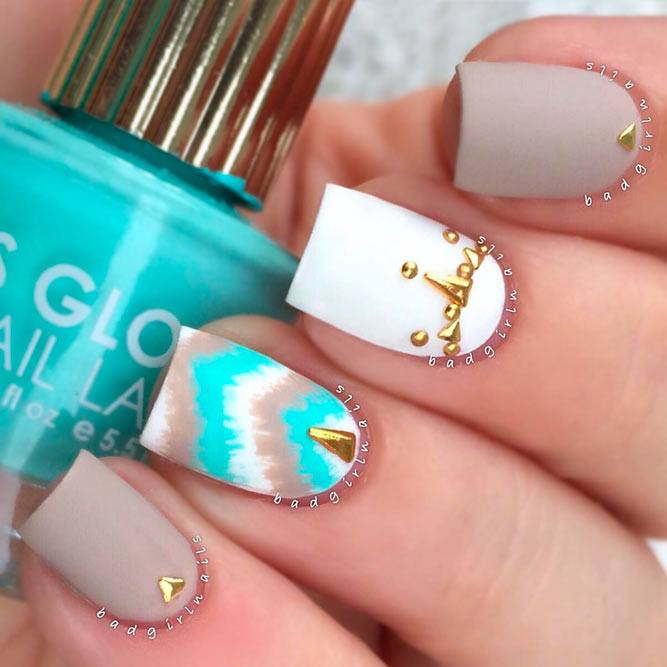 Pour les filles au foyer qui sont toujours occupées par des tâches ménagères ou pour celles qui doivent taper du texte, les ongles longs ne seront pas la meilleure option. La tendance de cette année est la manucure double et simple lune. Dans une telle manucure à la base du clou, un trou transparent est fait ou peint avec une nuance différente. Pour les ongles courts et prolongés, une telle manucure est la meilleure option. Il convient de prêter attention au dégradé, qui varie d’un clou à l’autre, ou à des motifs géométriques sous la forme de figures différentes et de hiéroglyphes qui s’avéreront appropriés à n’importe quelle longueur.