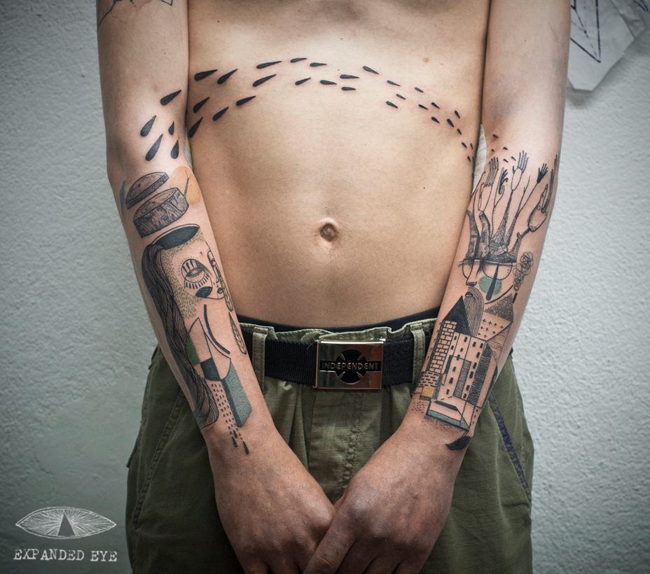 Image de tatouages inhabituels sur le bras