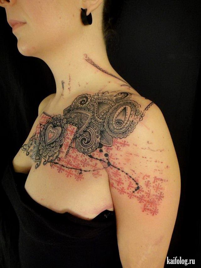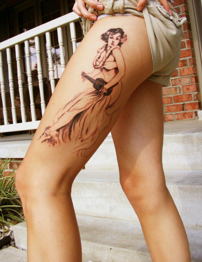 Maintenant, beaucoup de filles préfèrent appliquer des tatouages sur leur corps, ce qui peut être fait dans des styles et techniques complètement différents. Toutes les filles veulent sûrement couper quelque chose d'inhabituel et de spectaculaire pour surprendre les autres et mettre en valeur leur individualité. Très souvent, il existe des motifs de dentelle élégants et nobles qui peuvent aller: sur l’épaule avec une combinaison de couleurs délicates; au dos, représentant un corset féminin; sur la poitrine en collier; sur la jambe comme jarretières séduisantes. De plus, les filles réalisent très souvent le rayonnement de deux techniques complètement opposées dans un seul dessin, ce qui les rend complexes.