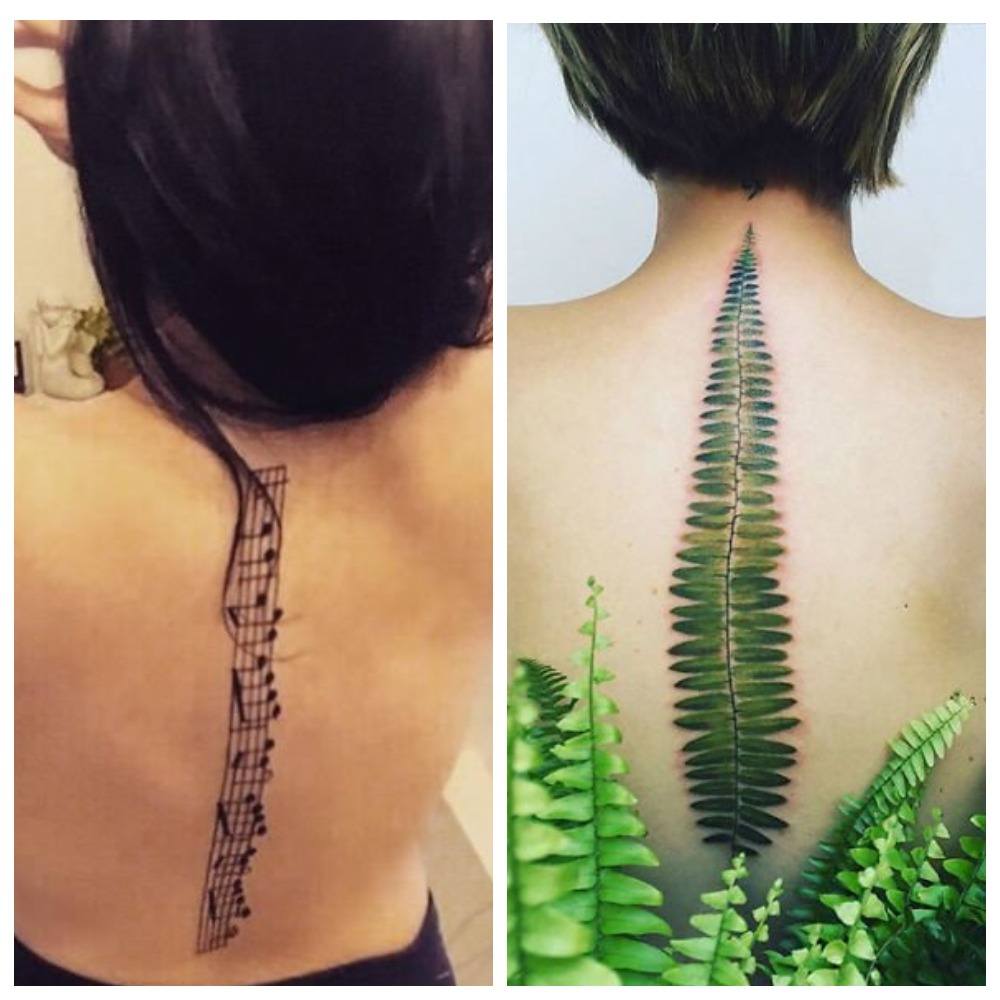 Lorsqu'ils choisissent un endroit pour appliquer un tatouage, ils prennent de plus en plus la décision de le représenter sur le dos. Et ce n’est pas une coïncidence, car sur cette partie du corps, vous pouvez dessiner à la fois des petits dessins et des images à grande échelle, car il y a des endroits où se promener. Très souvent, on peut voir à l'arrière des images spectaculaires, inhabituelles et intéressantes sous la forme de plantes situées sur toute la longueur de l'épine dorsale (épillets, conifères, feuillages, fleurs sauvages). Les aquarelles et les images géométriques sont très populaires, et il vaut la peine d'investir le caractère et l'ambiance du propriétaire. Par exemple, des tatouages tels que Peter Pan ou Alice, tombant d’une montagne de livres, l’esprit de la nature sous la forme d’une amulette personnelle, une araignée au centre du dos, descendant le long d’une toile d’araignée ou d’une éclipse phasée semblera très original.