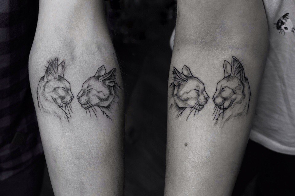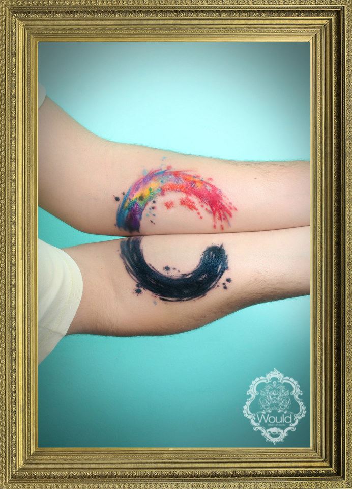Si vous êtes ensemble pour toujours, pourquoi ne pas exprimer vos sentiments avec un tatouage? Surtout s'il s'agit d'un double tatouage. Il y a souvent des options appariées faites sous la forme d'un cœur ou de sa moitié. Ils réalisent parfois des combinaisons de cœurs et de flèches, deux pièces de puzzle, des images de yin et de yang, l’inscription roi et reine en anglais, ou un château et une clé. Vous pouvez simplement représenter les mêmes dessins que les deux partenaires aiment.