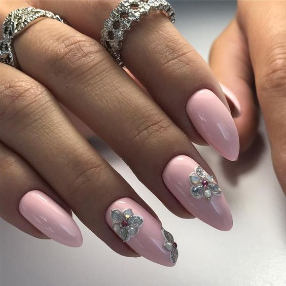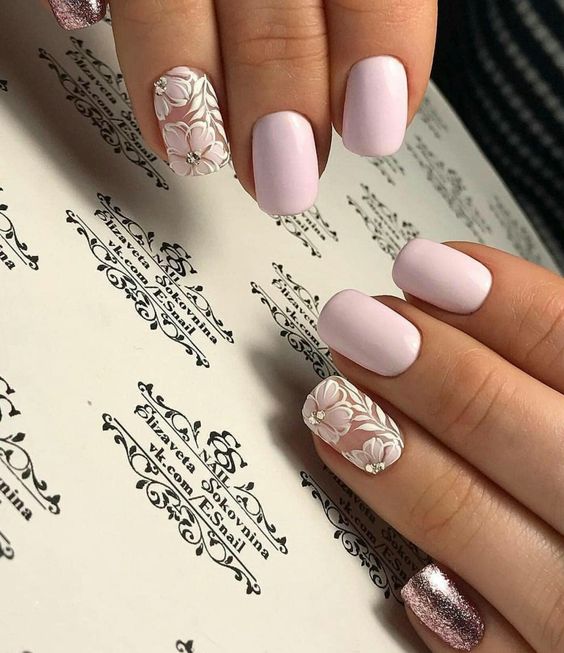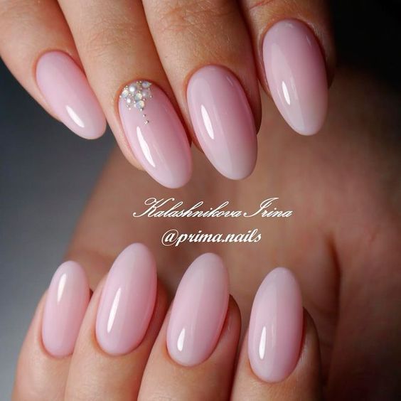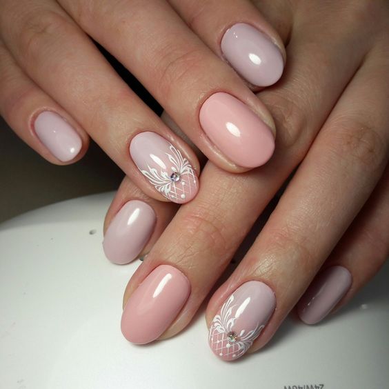 La manucure nue allonge visuellement vos ongles, ce qui permet aux ongles longs de paraître encore plus longs. Une technique utilisant des vernis transparents est très populaire en manucure nue. Vos ongles seront impeccables et naturels. Et si vous ajoutez un peu de strass, de cailloux ou d’étincelles, vous aurez une option festive. Les dessins ne seront pas superflus - ce peut être une géométrie à la mode cette année, des images de feuilles ou de fleurs.