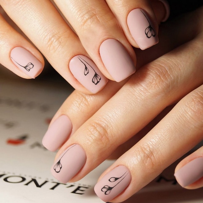 Matte Manicure Nude est une excellente beauté douce et féminine de vos mains. La manucure nue mate a fière allure dans une version monophonique. Mais si vous décidez d'ajouter un strass, mais seulement un peu, vous obtiendrez une très belle et attrayante manucure. En outre, la base mate peut être diluée avec des motifs délicats et non accrocheurs. Il est très important de savoir que la manucure matte light est très sale. Les propriétaires de cette manucure doivent donc faire preuve de plus de prudence.