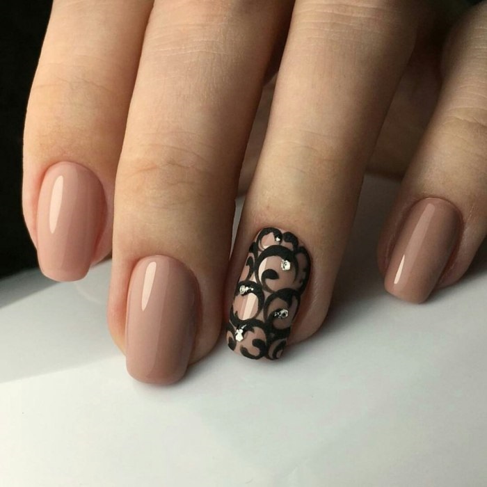 La manucure nue est un champ sans fin pour les fantasmes de toute conception. Sa base naturelle permet de la compléter avec toutes les options de design lumineuses et complexes. Pour les expériences et pour obtenir des résultats parfaits, il est préférable d'utiliser des teintes opaques de vernis. Si vous utilisez des vernis transparents ou translucides, certaines options de conception perdront leur beauté.