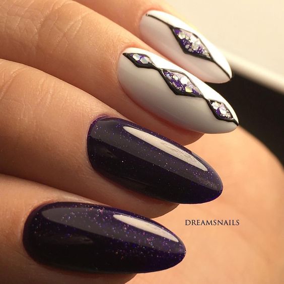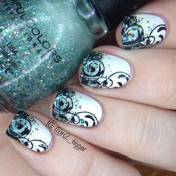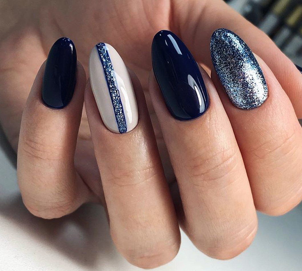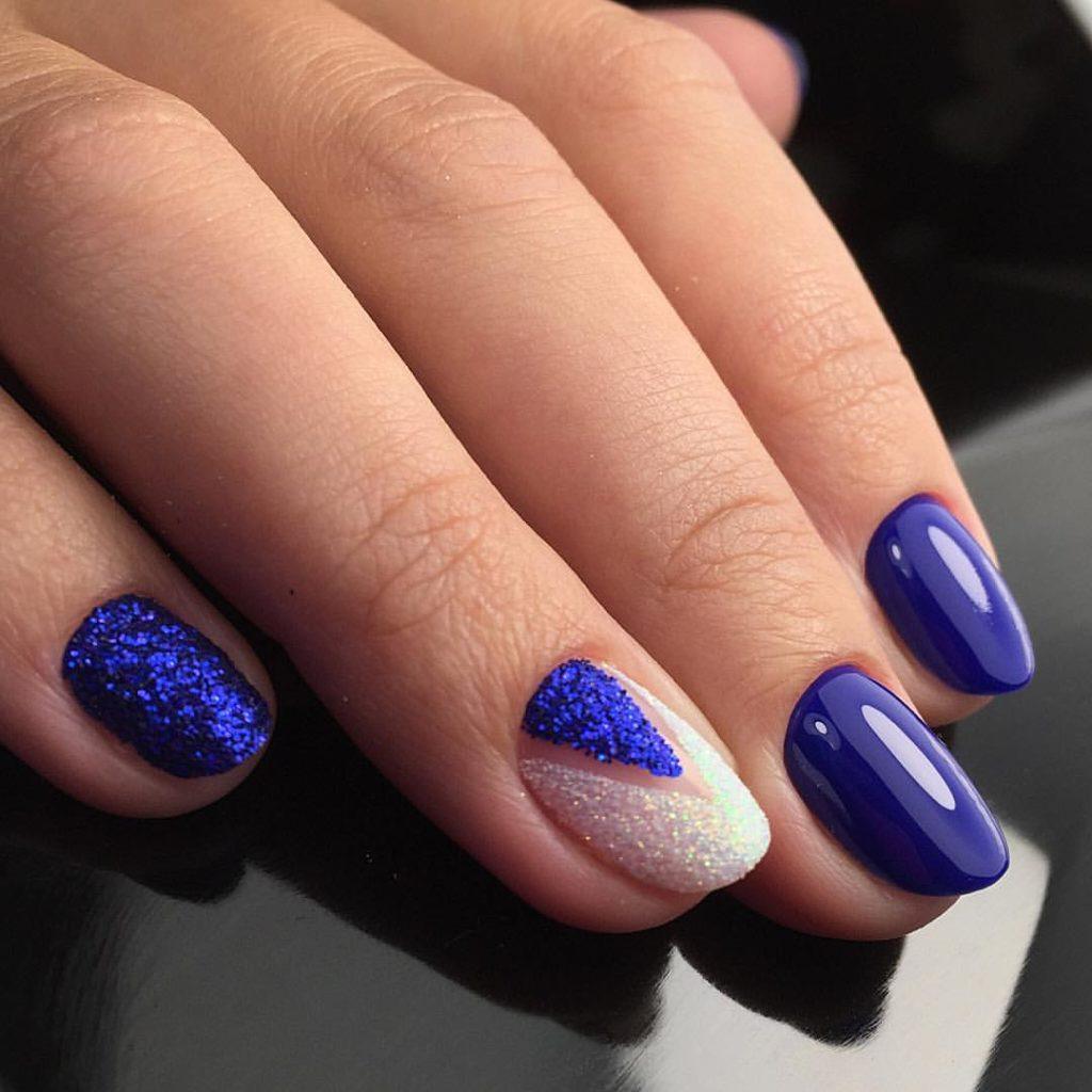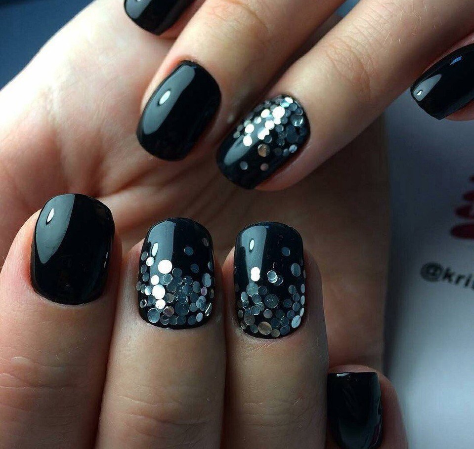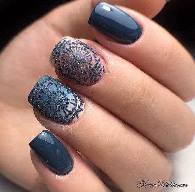 Quand d'autre, sinon en hiver, laisser libre cours à des étincelles et des paillettes pour créer une manucure inégalée? Ils se marient parfaitement avec les nuances sombres et nues, en particulier avec le beige, le noir, le bordeaux, le bordeaux, le rose tendre et le bleu. Une manucure d'hiver brillante à la mode fera bonne figure sur les ongles longs et courts. En ce qui concerne la conception de la manucure elle-même, ses paillettes et ses étincelles s’allient bien à la manucure française, à la conception mate et sur une base simple.